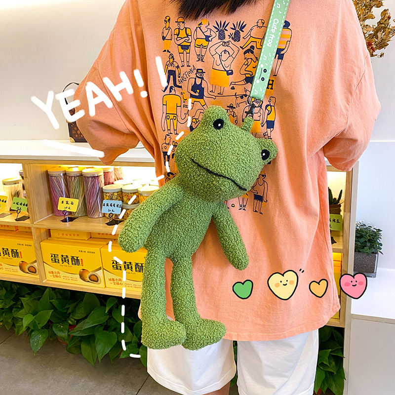 醜い萌えぬいぐるみの子供は斜めにバッグを掛けます。