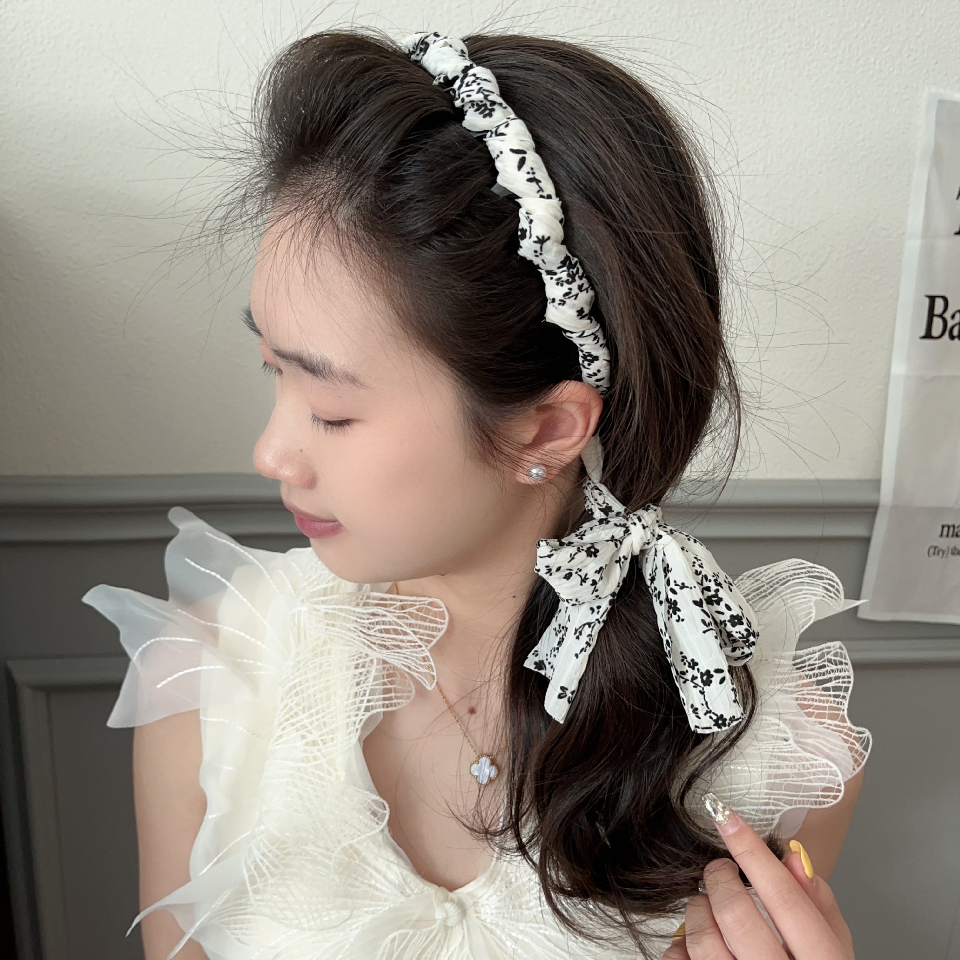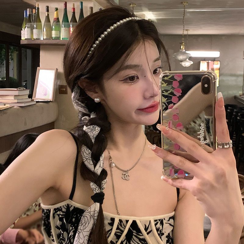 超仙砕花ヘアバンド編み髪シルクタオルリボンカチューシャ一体高級感2025新作真珠髪ひもカチューシャ女