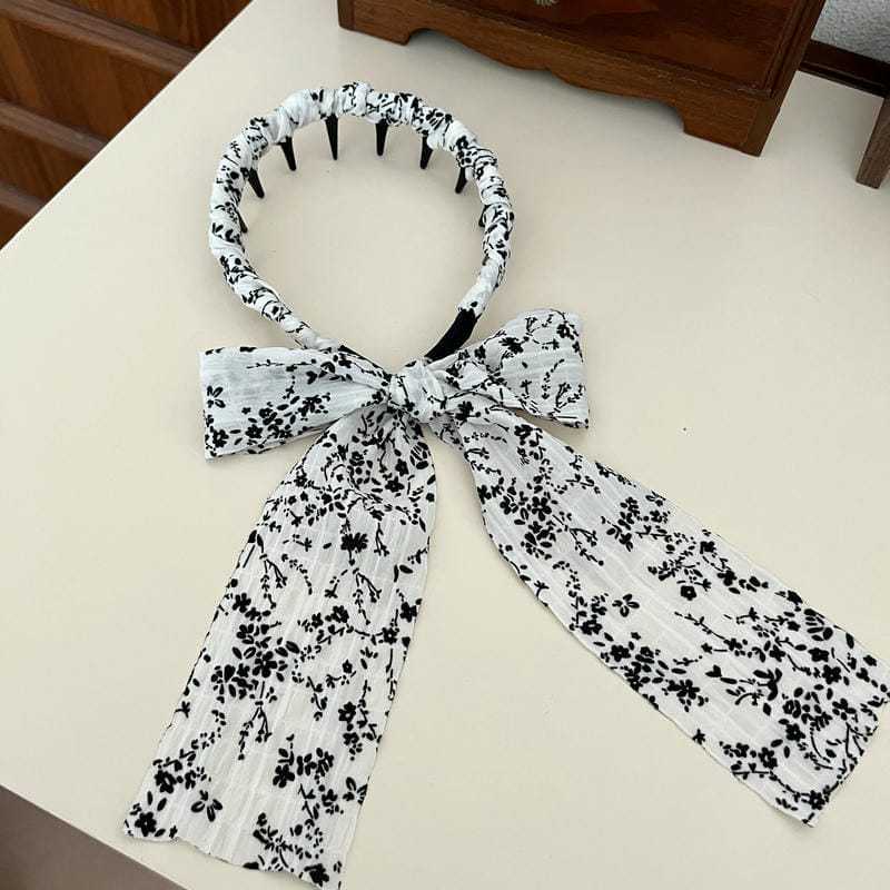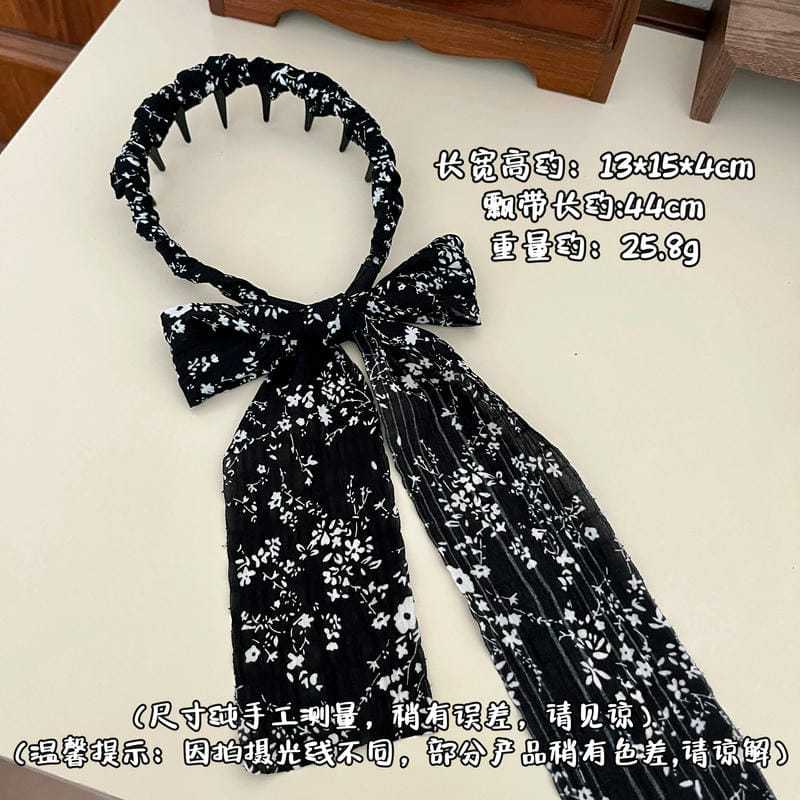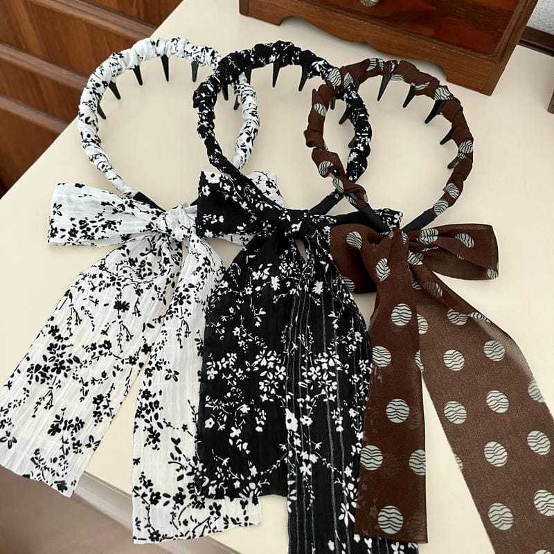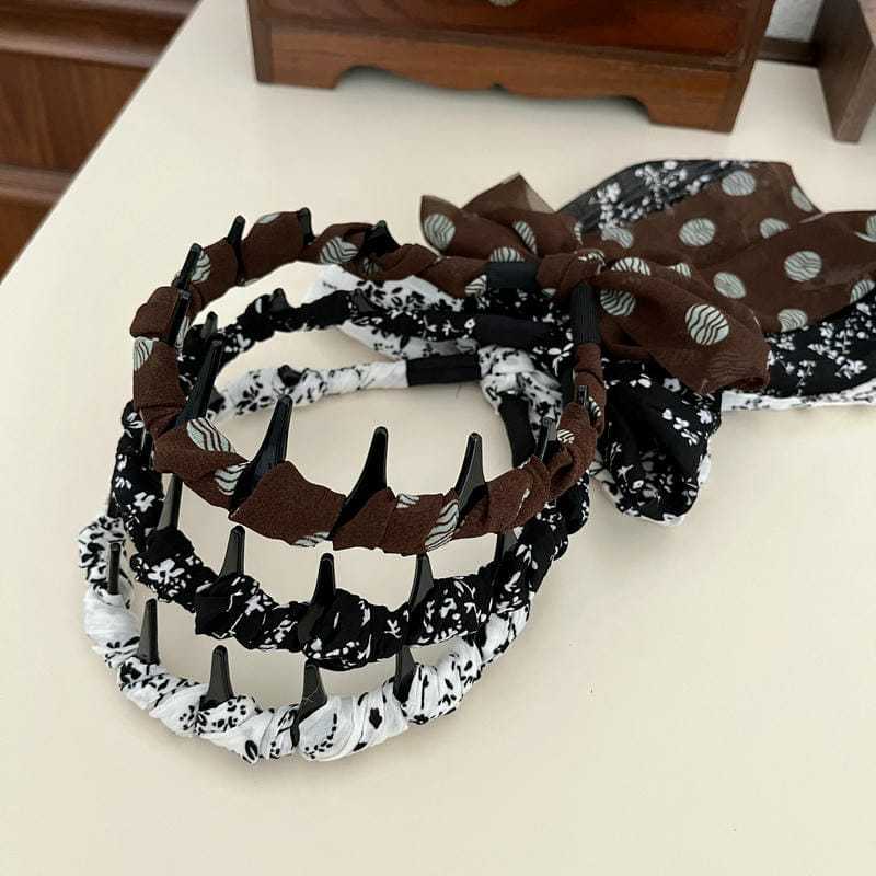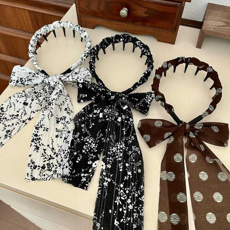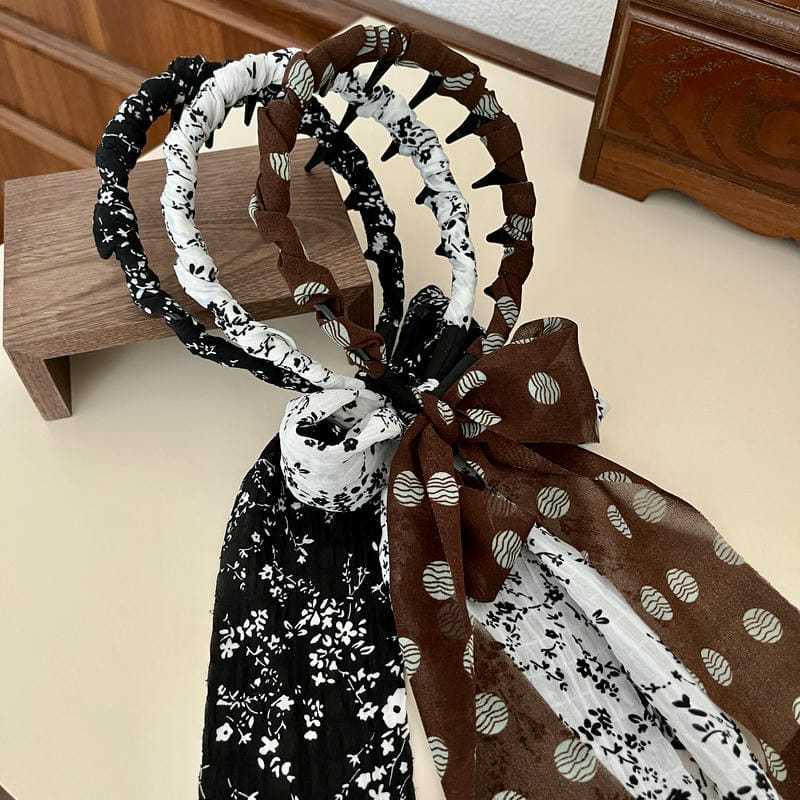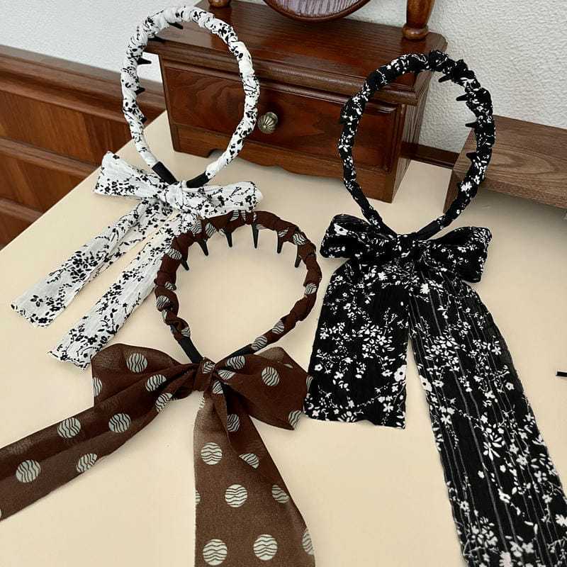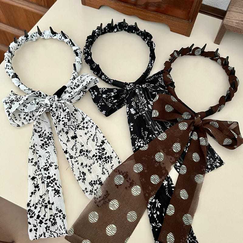 ブラウン水玉リボン(深歯カチューシャ),オフホワイトの花柄リボン(深歯カチューシャ),黒の花柄リボン(深歯カチューシャ)