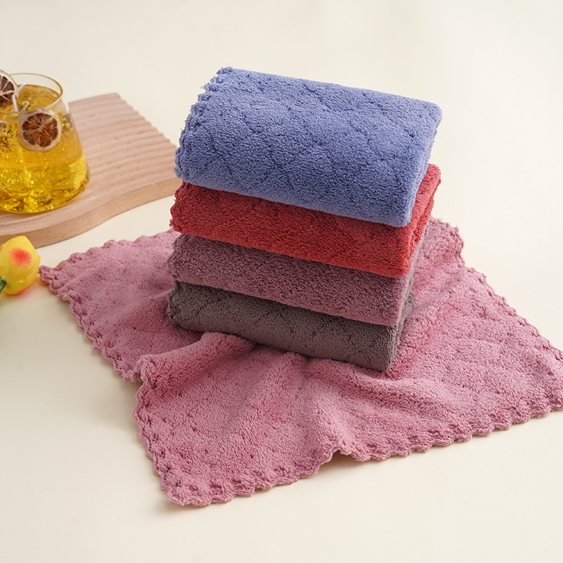 家庭用コーラルベルベットのプリントタオルは雑巾を厚くして30*30台所で吸水して毛が落ちにくい柔らかい清潔タオル