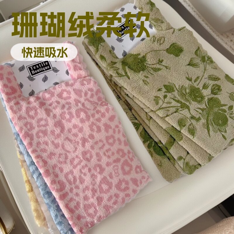 新款家用珊瑚绒印花方巾百洁布高颜值厨房抹布柔软吸水不掉色抖音