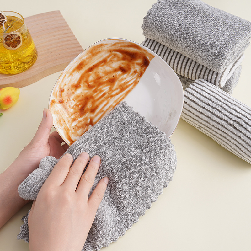 跨境家用抹布珊瑚绒方巾厨房专用百洁布不易沾油洗碗布加厚吸水
