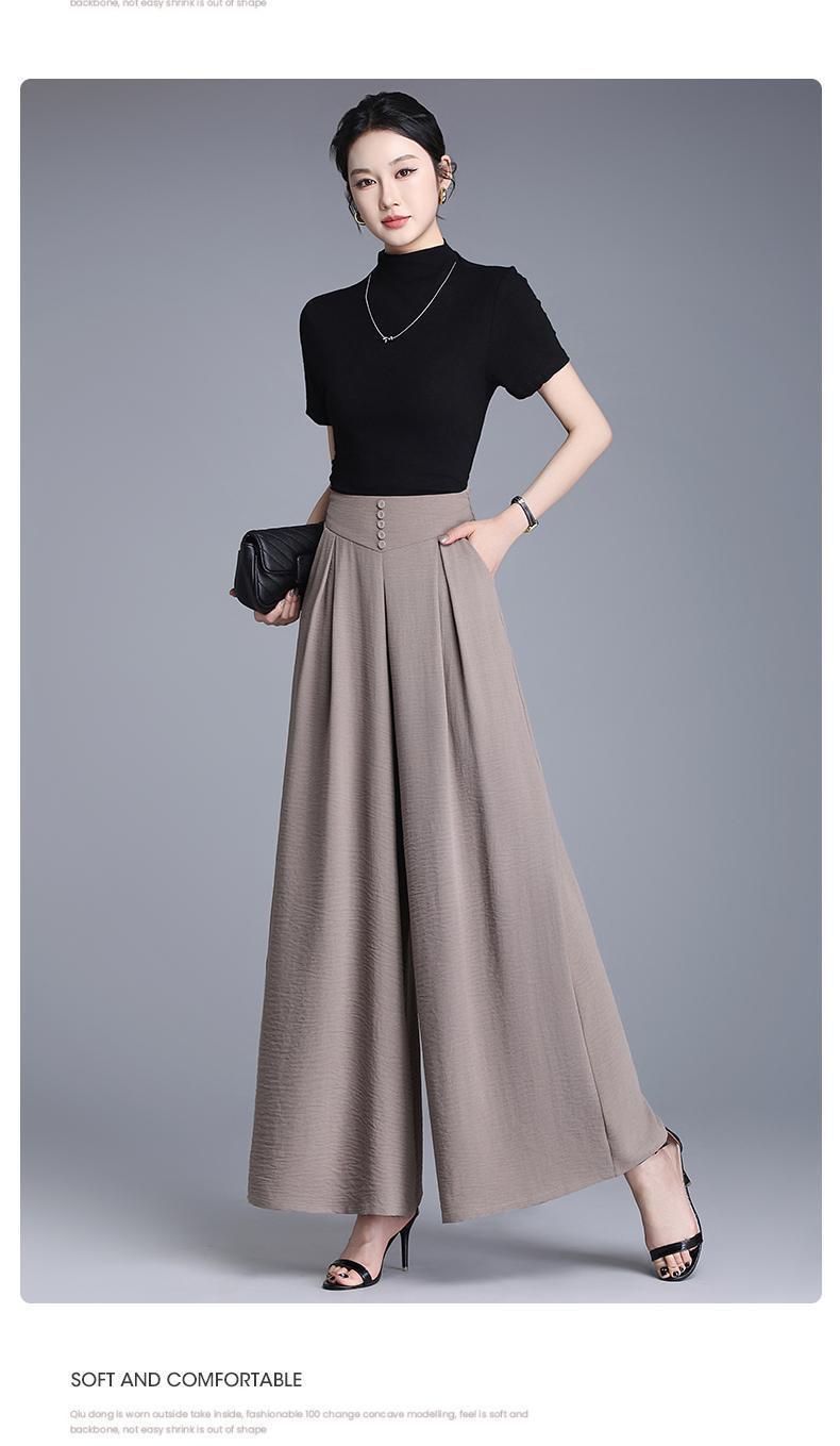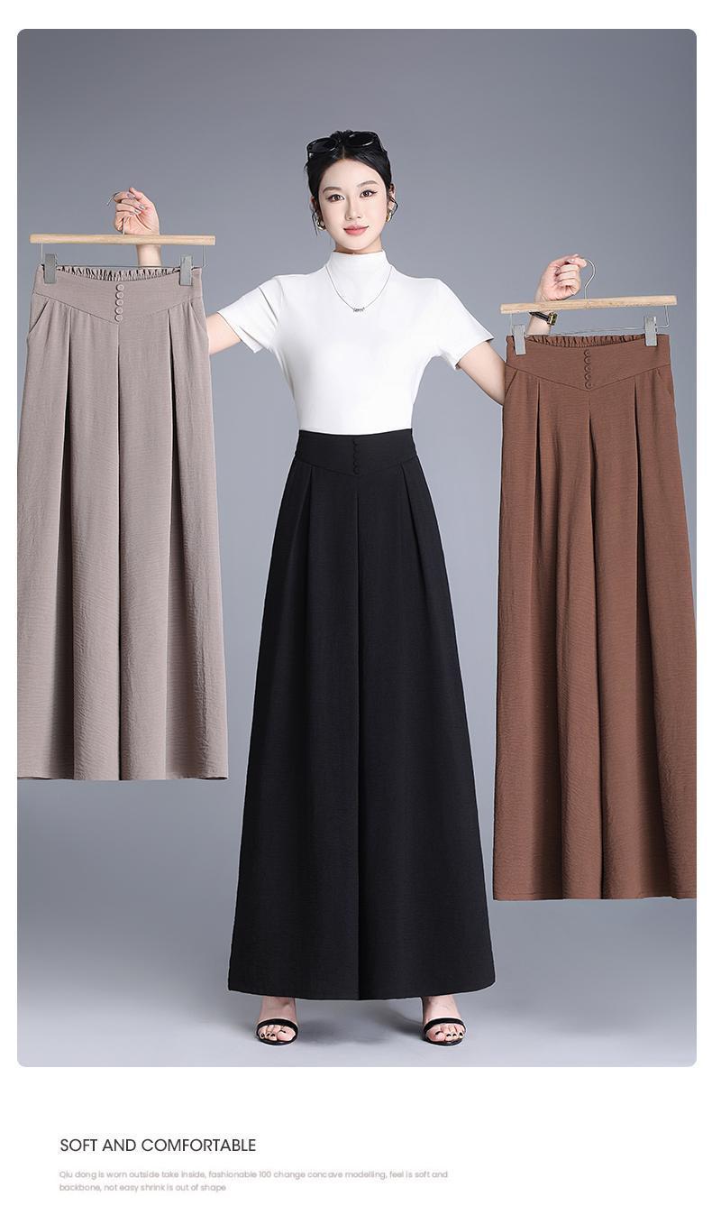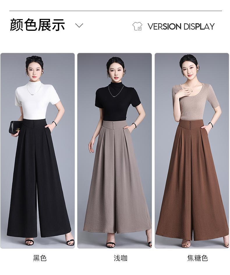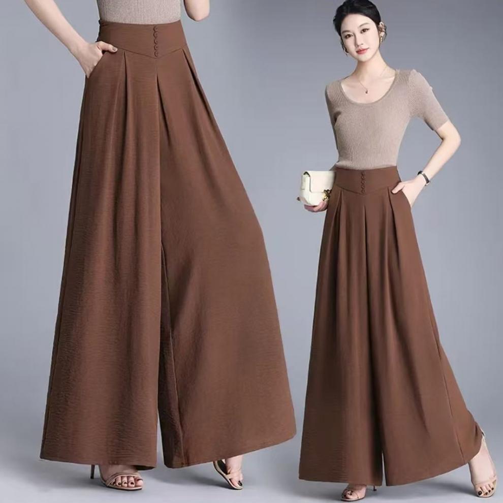 2025年春夏新作パンツ、ドレープスカートパンツ、レディースワイドパンツ、万能ハイウエスト9点レッグスカートパンツ