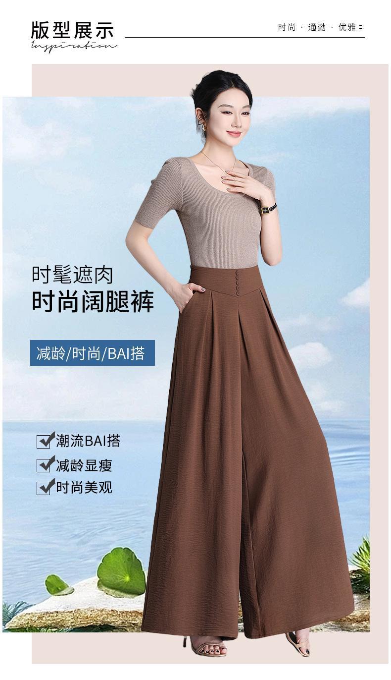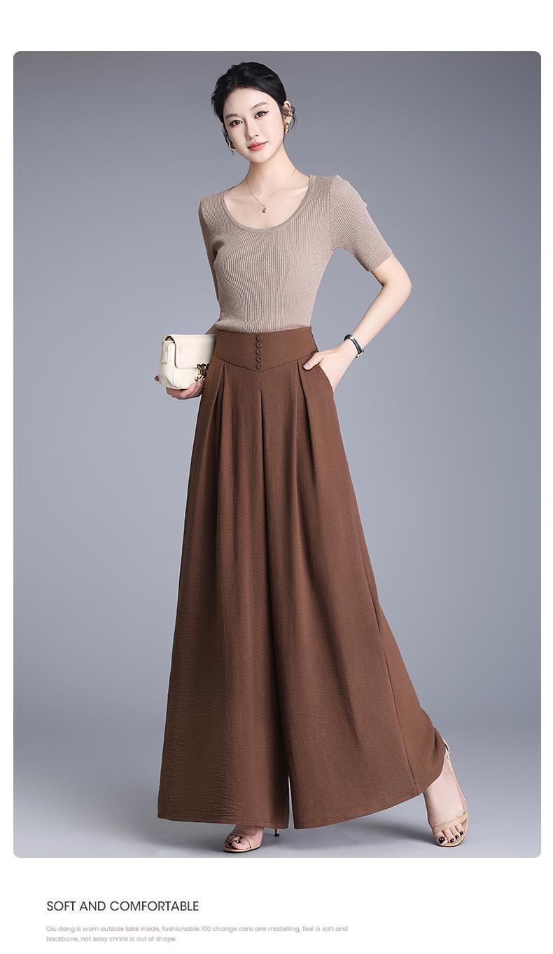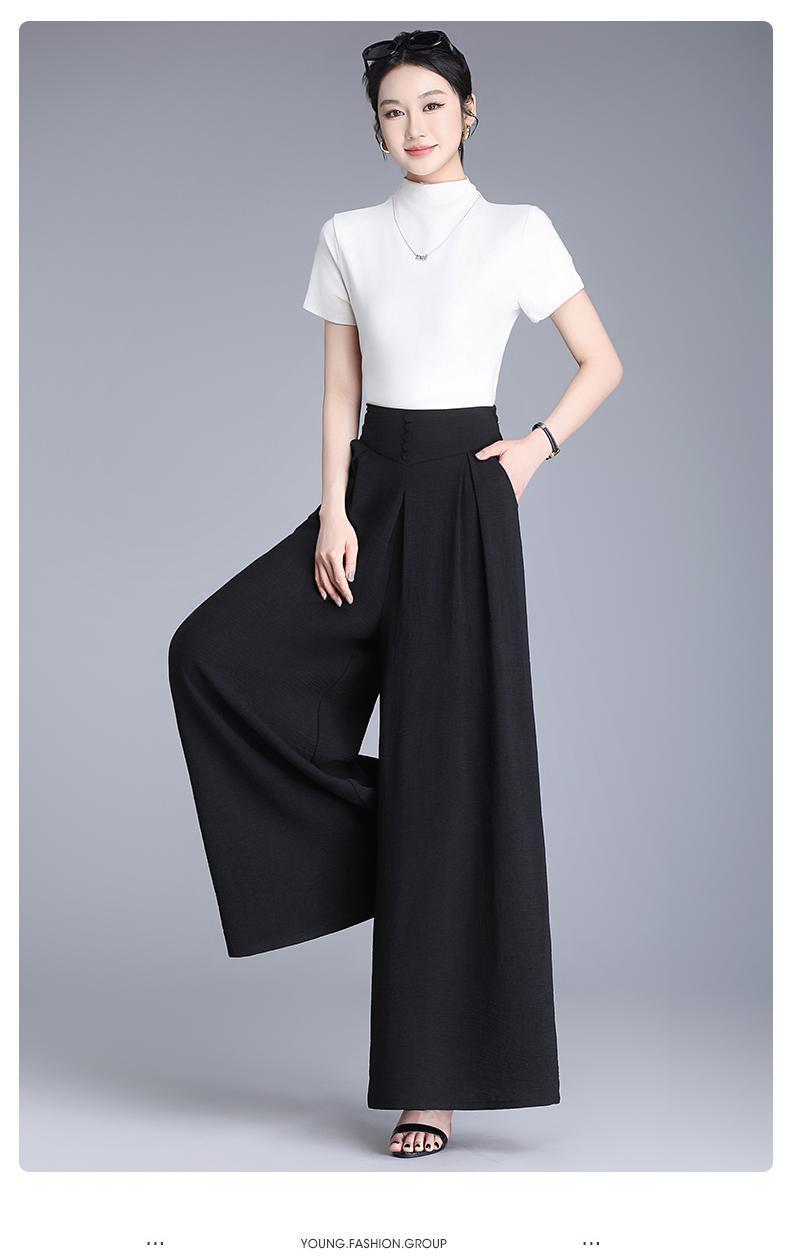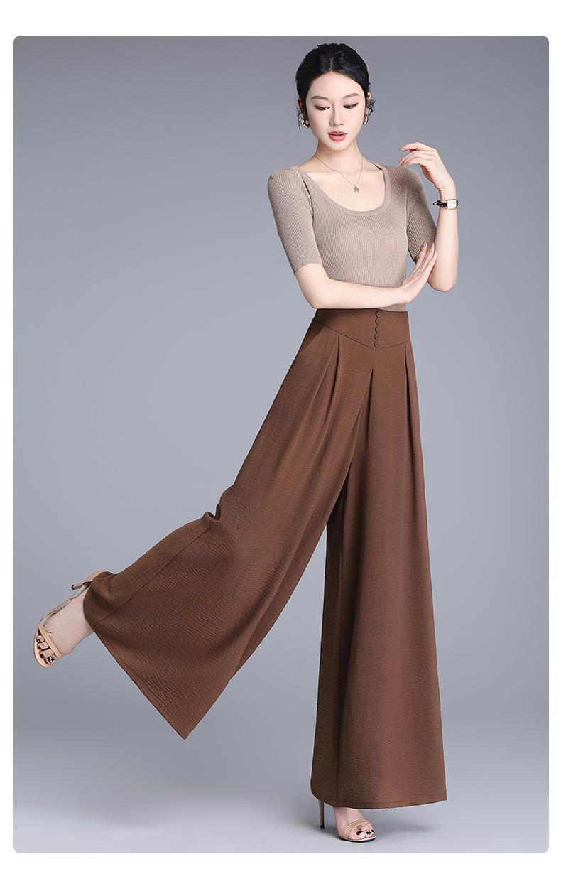 2025年春夏新作パンツ、ドレープスカートパンツ、レディースワイドパンツ、万能ハイウエスト9点レッグスカートパンツ