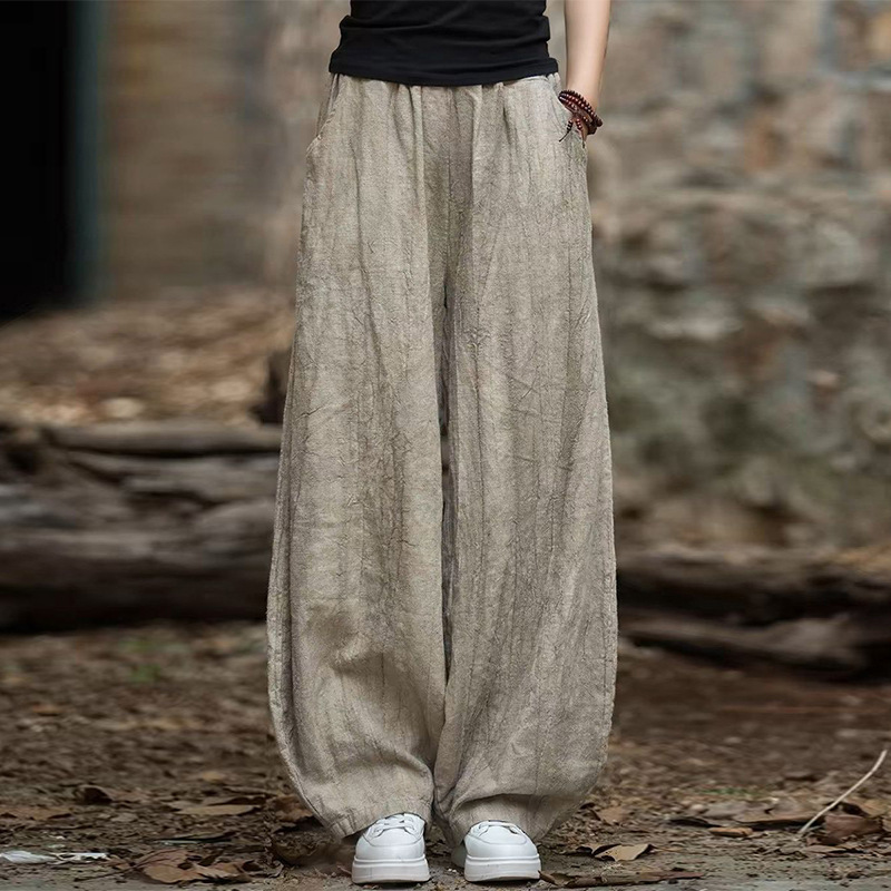 新型レトロ国風春夏秋綿綿綿麻女装ゆるい太極ズボンハーレム長ズボン灯籠ズボンデザイン女