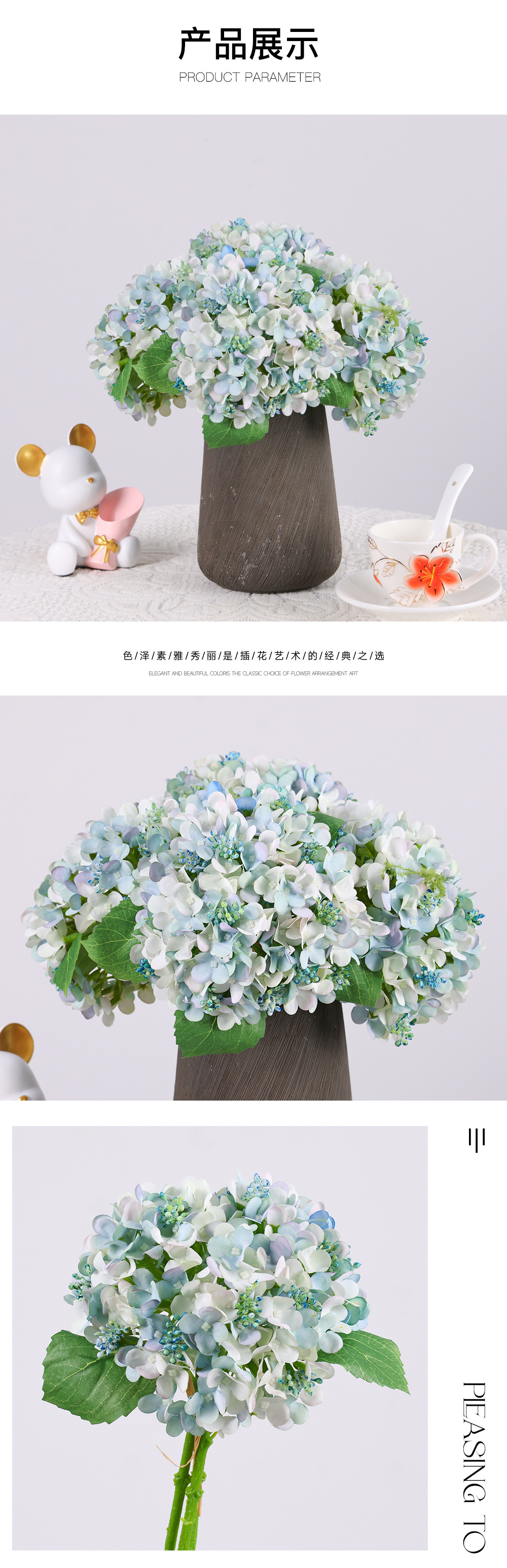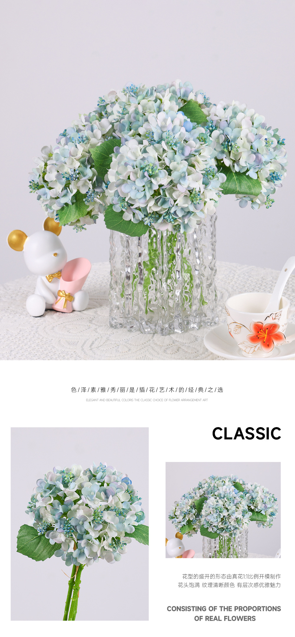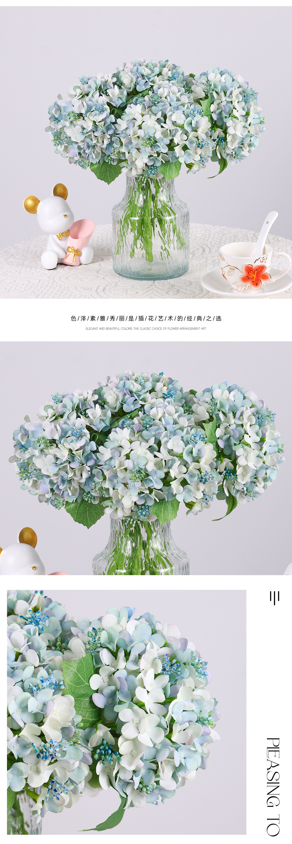 シングルヨーロッパ模擬アジサイ造花ブーケセットホームリビングルームダイニングテーブルコーヒーテーブル装飾花花装飾品