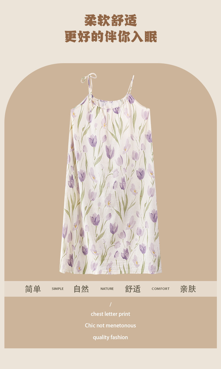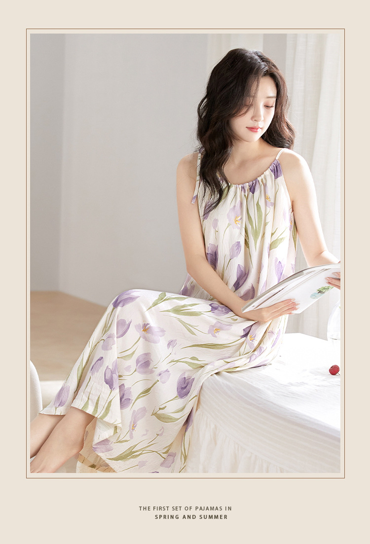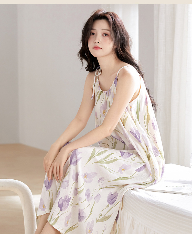 綿 100% サスペンダーパジャマ女性の夏の純粋な綿胸パッドホームウェアネグリジェ薄い紫色の猫ルーズ大きいサイズ