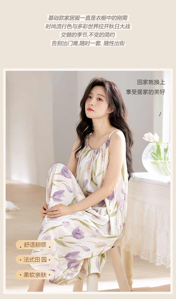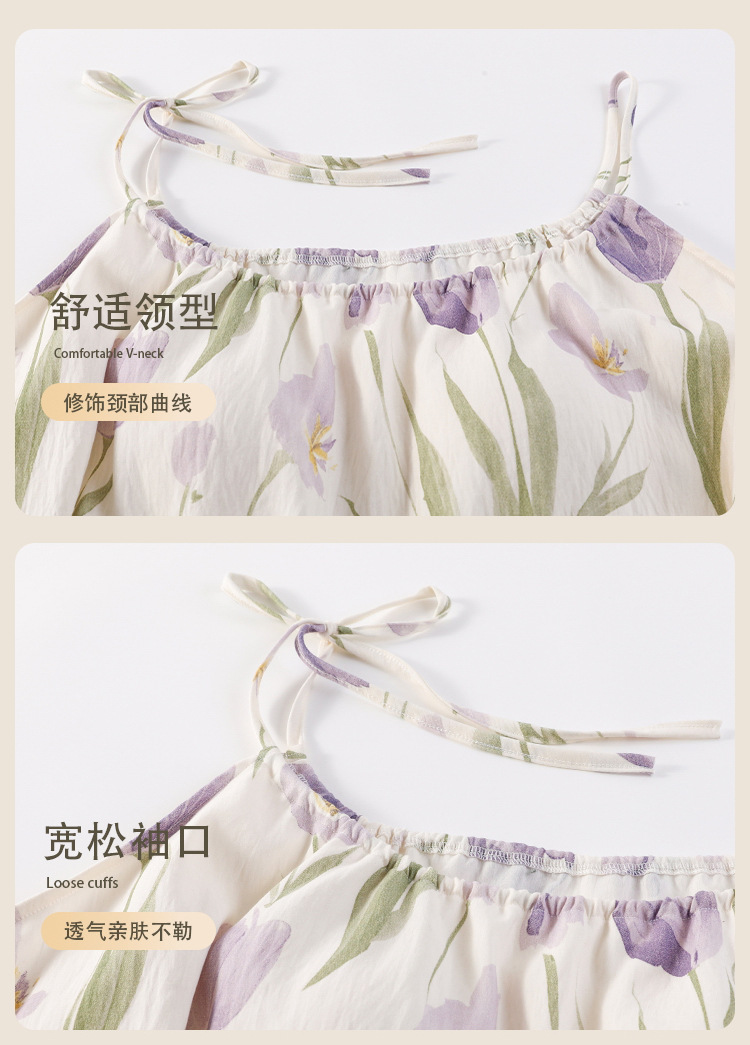クロスボーダーのストラップの大きいサイズのパジャマの女性の夏の新型の欧米風の高級感の花のワンピースのパジャマの家の服