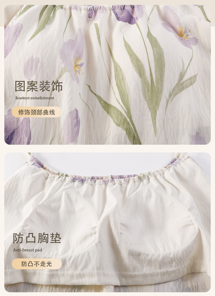 雲の綿のストラップのパジャマの女性の夏の甘い半袖のパジャマの着物の中の長いタイプの胸のクッションのパジャマの家の服