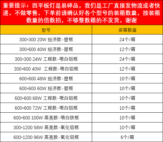 300*300 20Wエコノミーモデル プラスチックフレーム,300*600 40Wエコノミーモデル プラスチックフレーム,300*300 24W エンジニアリングモデル スプレー ホワイト アルミニウム フレーム,300*600 40W エンジニアリングモデル スプレー ホワイト アルミニウム フレーム,600*600 48Wエコノミーモデル-プラスチックフレーム,600×600 48Wエコノミーモデル シルバーアルミフレーム,600*600 60Wエコノミーモデル-プラスチックフレーム,600*600 68W エンジニアリングモデル スプレー ホワイト アルミニウム フレーム,600*600 72W高輝度モデル - アルミナフレーム,600*600 100W 超高輝度モデル・鉄フレーム,300*1200 58W高輝度モデル - アルミナフレーム,600*1200 96W高輝度モデル - アルミナフレーム