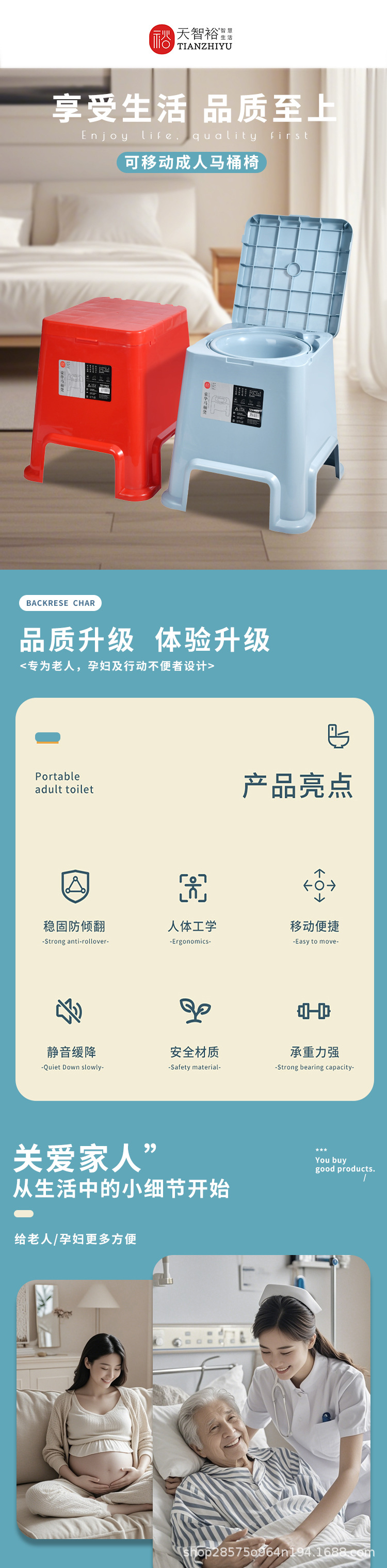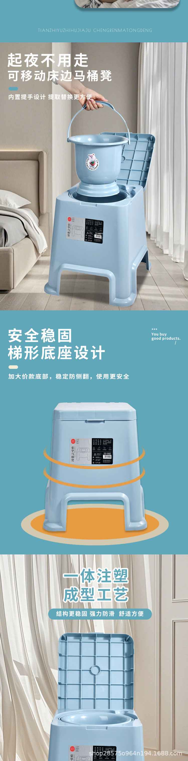 孕妇老年人床头家用加厚马桶加高便盆塑料卧室移动安全坐便器多用