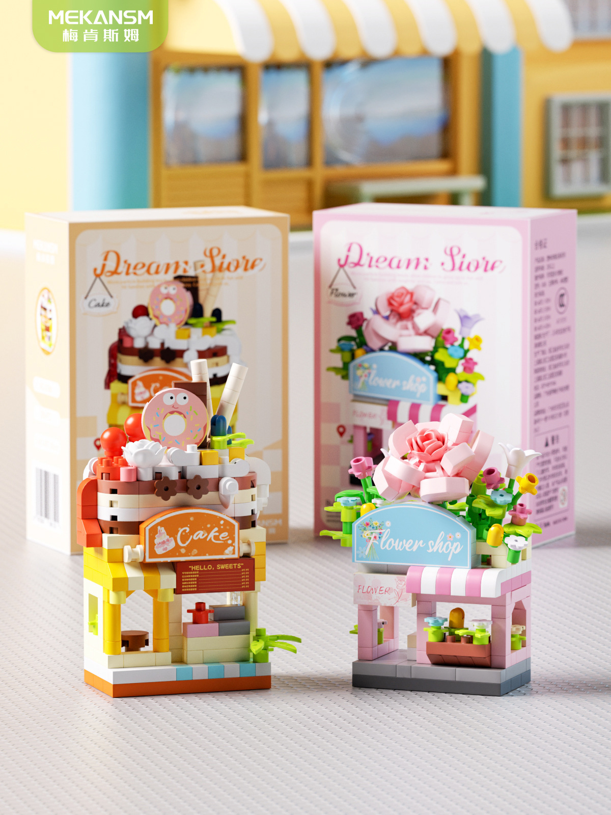 兼容乐高梦想小镇城市街景积木贩卖车鲜花店儿童益智玩具批发代发