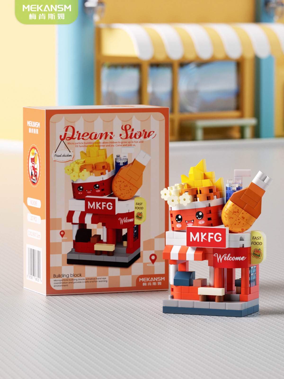 批发代发街边贩卖小车街景积木兼容乐高儿童玩具摆件六一礼物