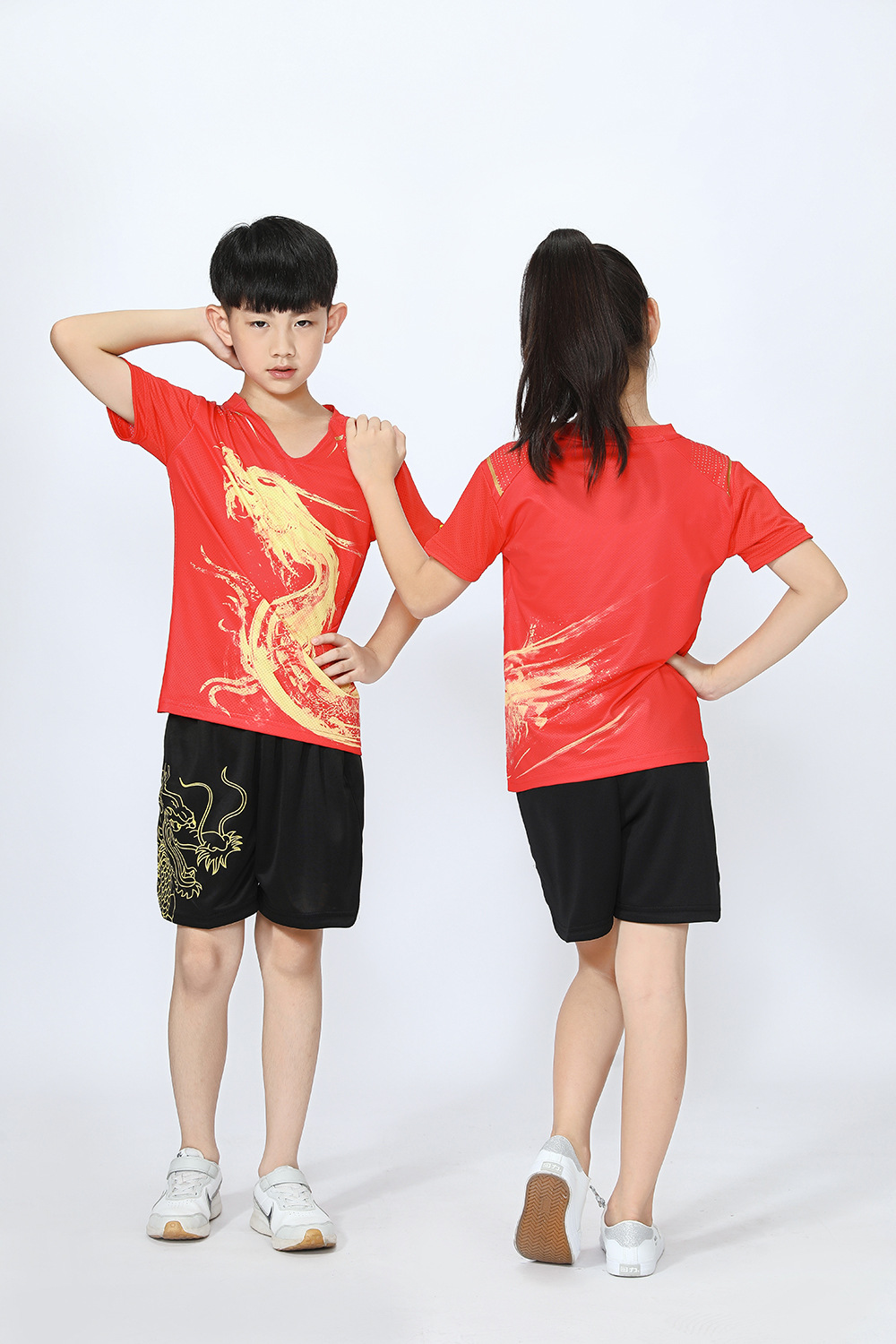 バドミントンユニフォーム、高見え男女スーツ、卓球ユニフォーム、子供用半袖トップス、カスタマイズされたドラゴンボートトレーニングユニフォーム