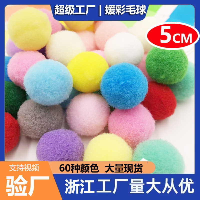 5 センチメートル大型毛玉高弾性ポンポン送料無料在庫卸売カラフルな毛玉幼稚園手作り DIY