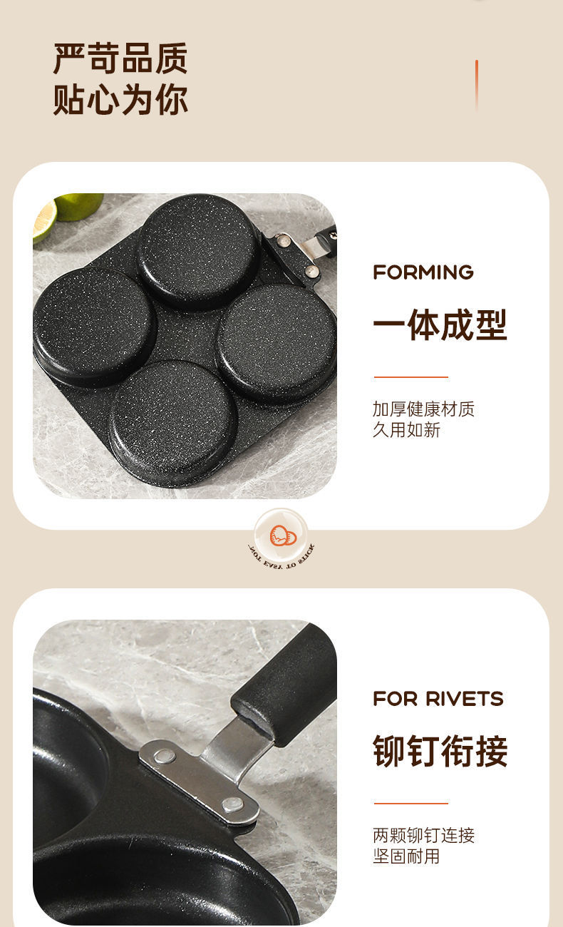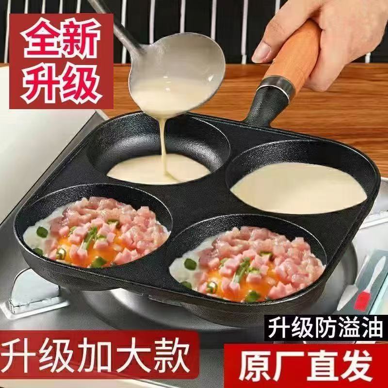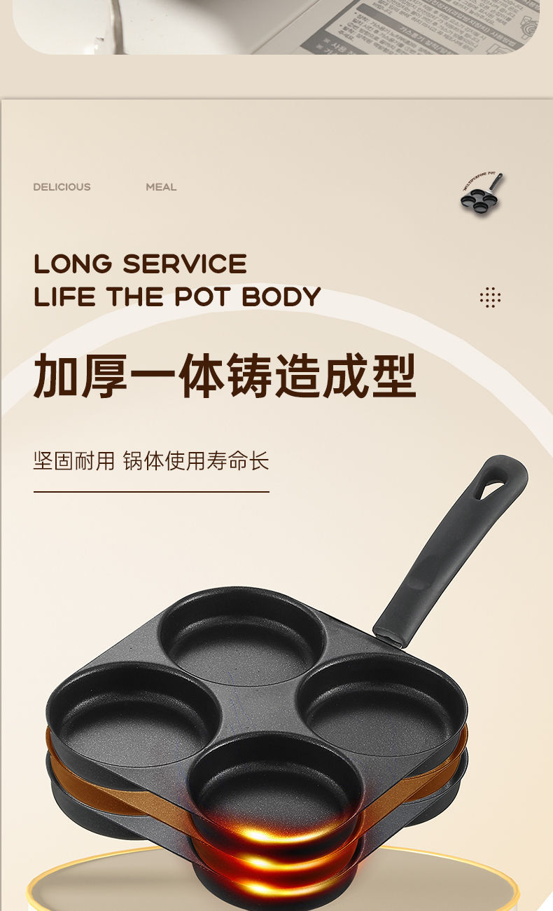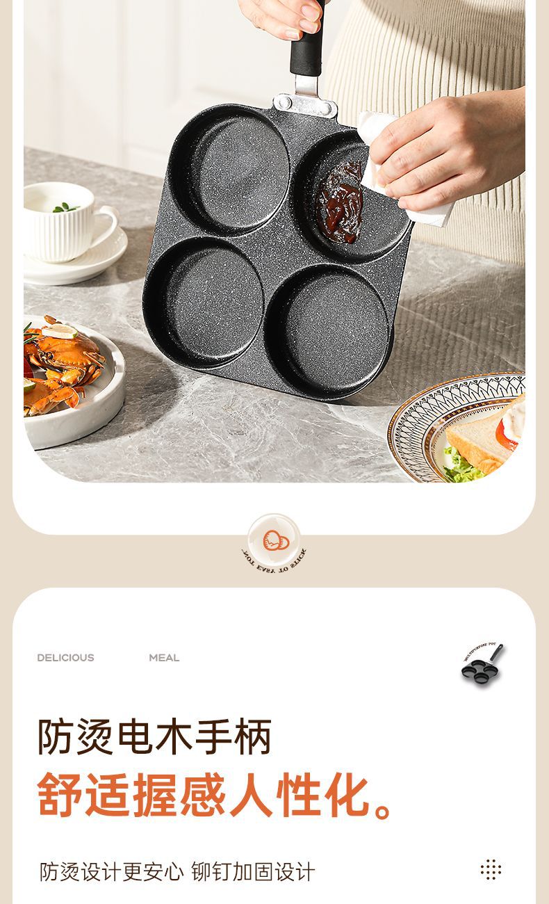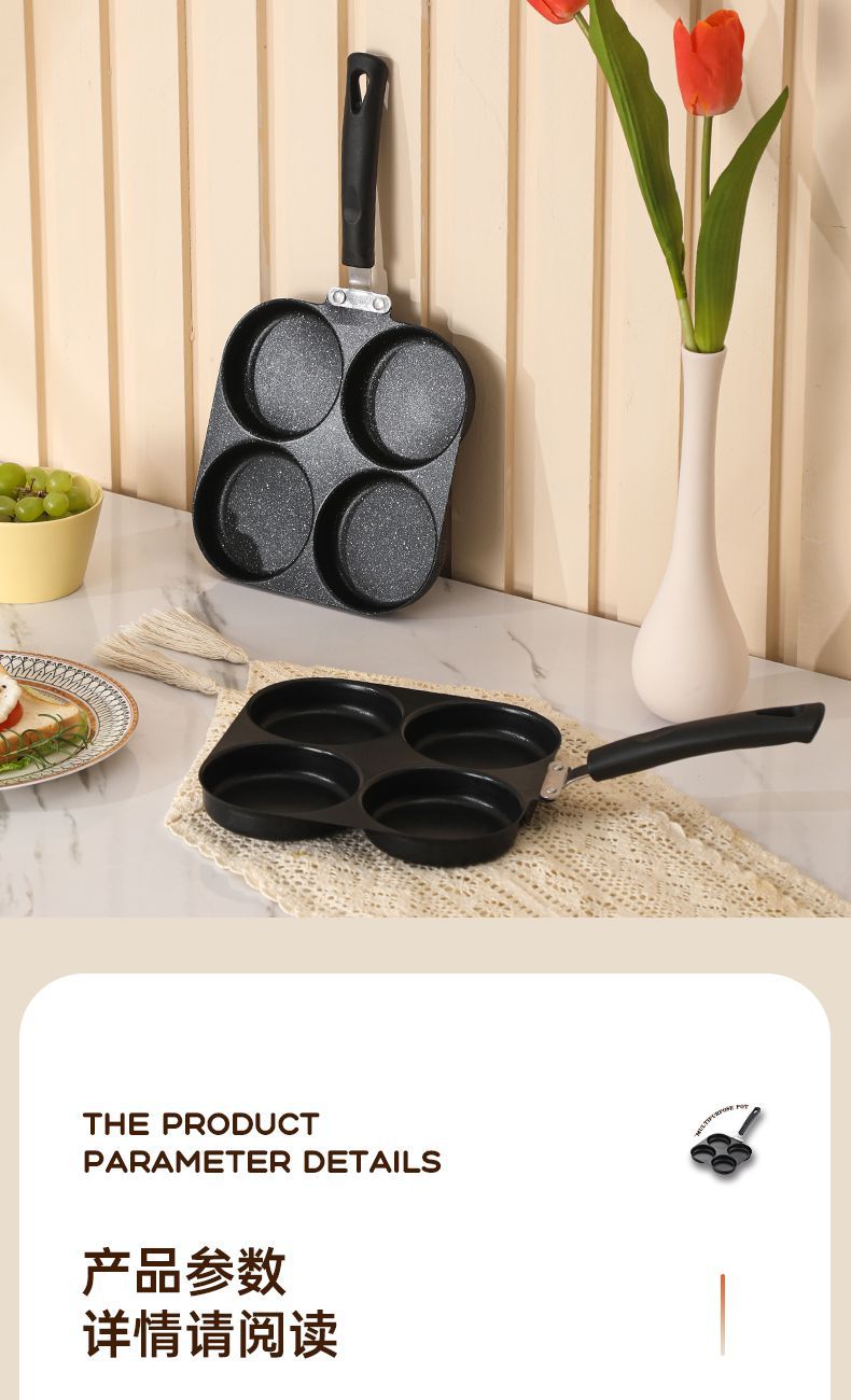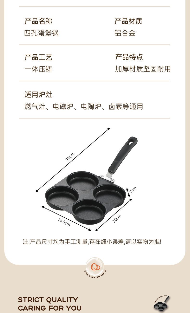 フライパン 4 穴ハンバーガー鋳鉄平底朝食ノンスティックパン型家庭用フライパンコーティングされた卵オムレツアーティファクト