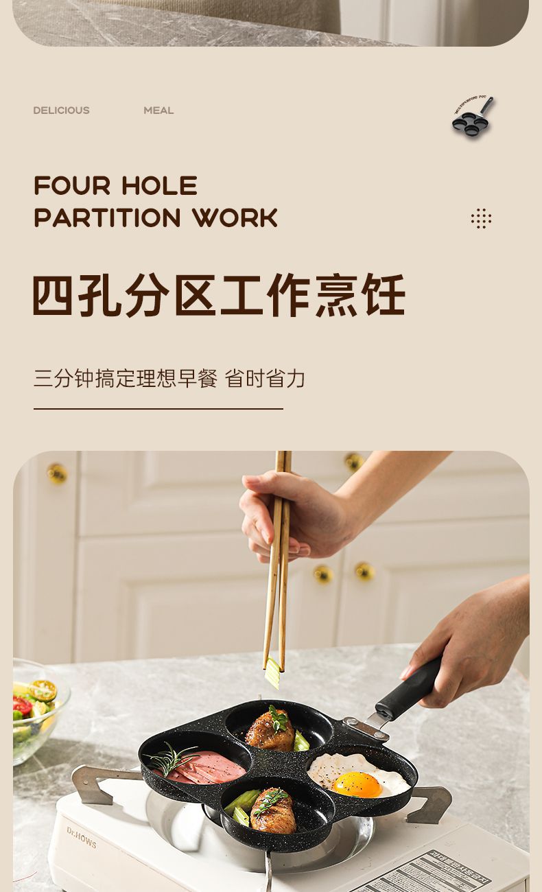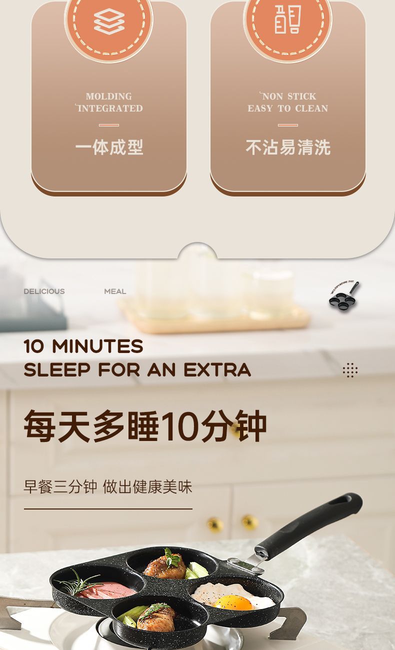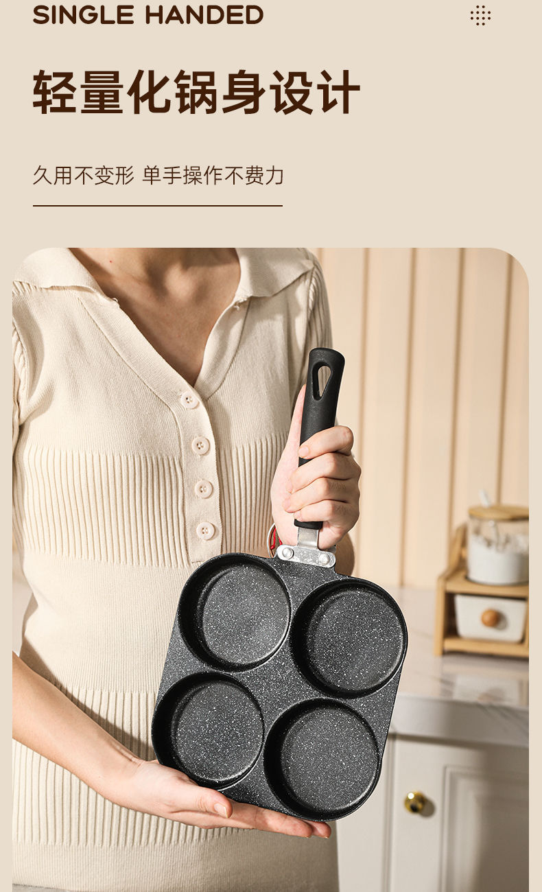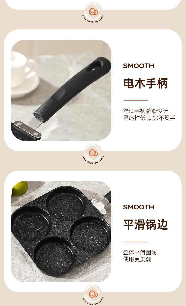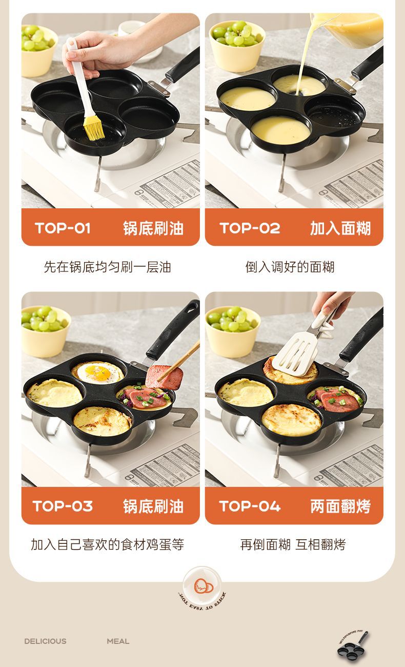フライパン 4 穴ハンバーガー鋳鉄平底朝食ノンスティックパン型家庭用フライパンコーティングされた卵オムレツアーティファクト