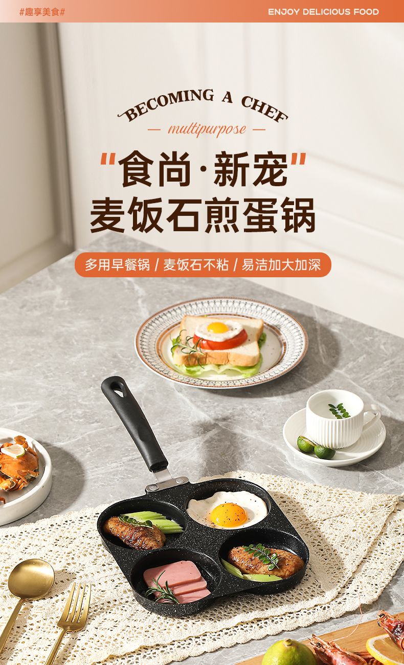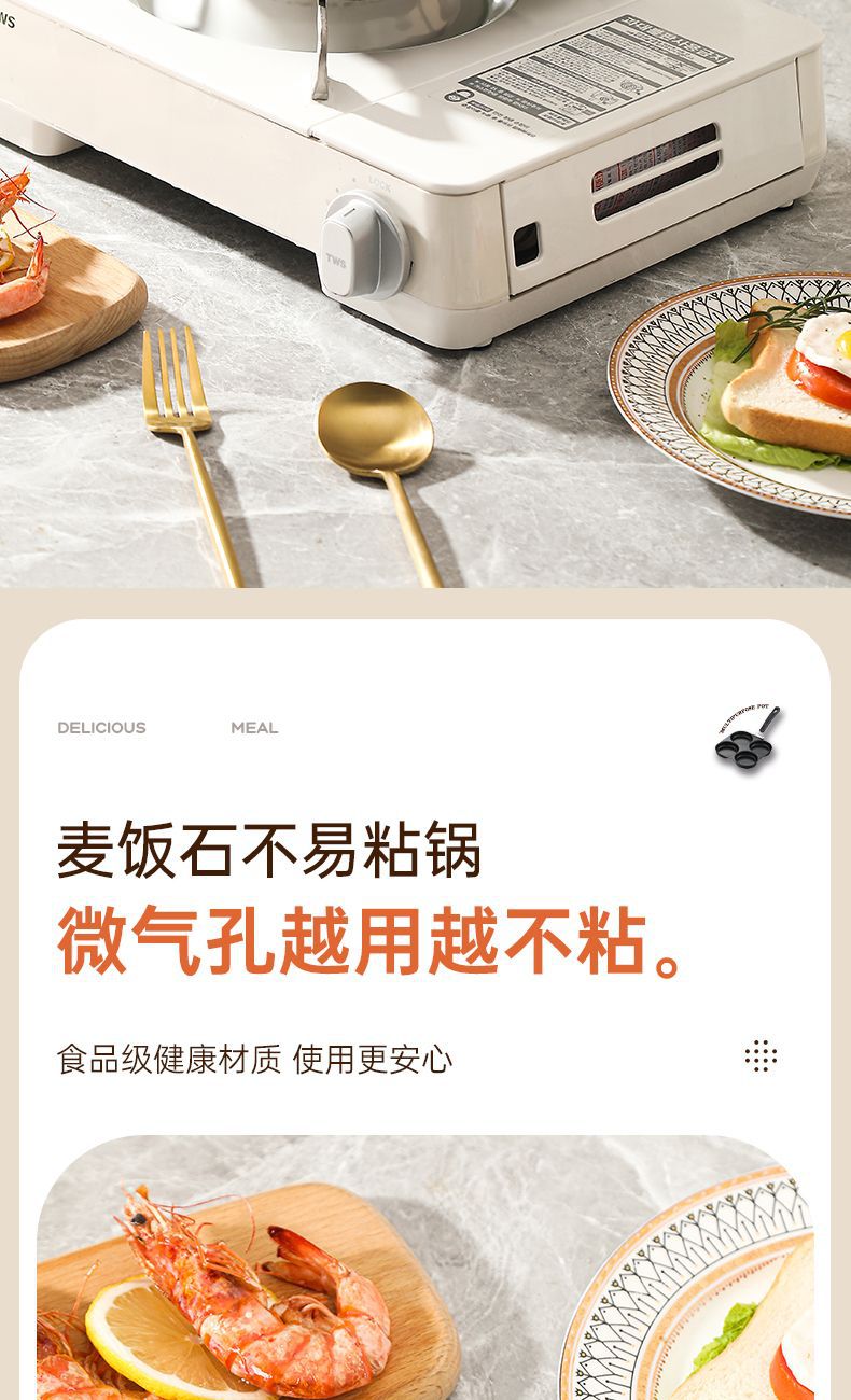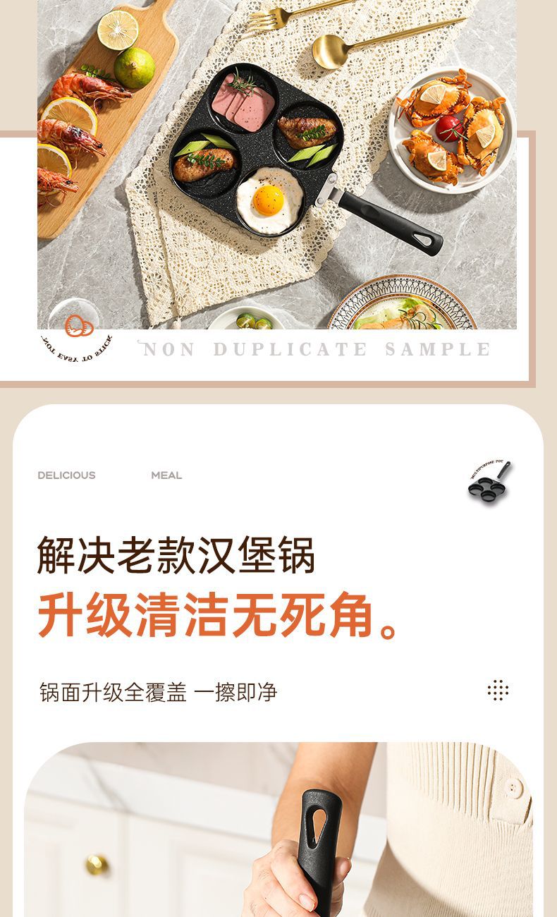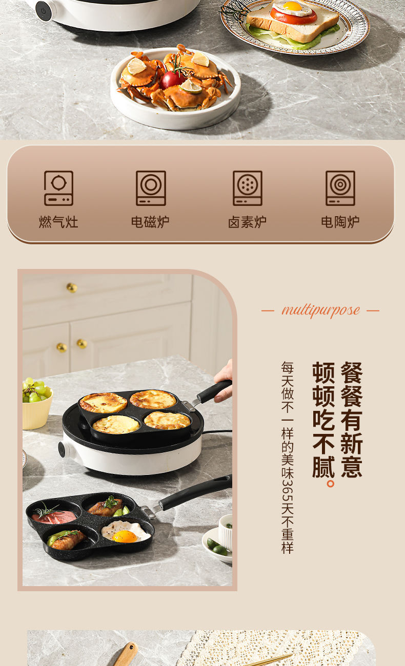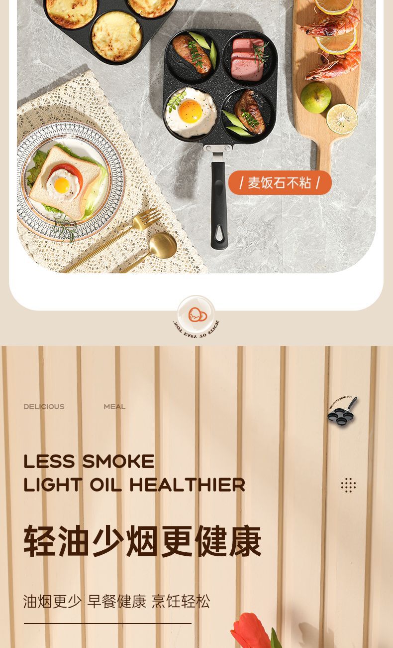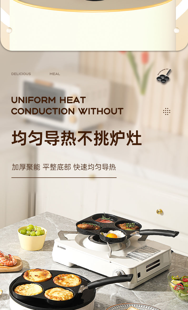 フライパン 4 穴ハンバーガー鋳鉄平底朝食ノンスティックパン型家庭用フライパンコーティングされた卵オムレツアーティファクト