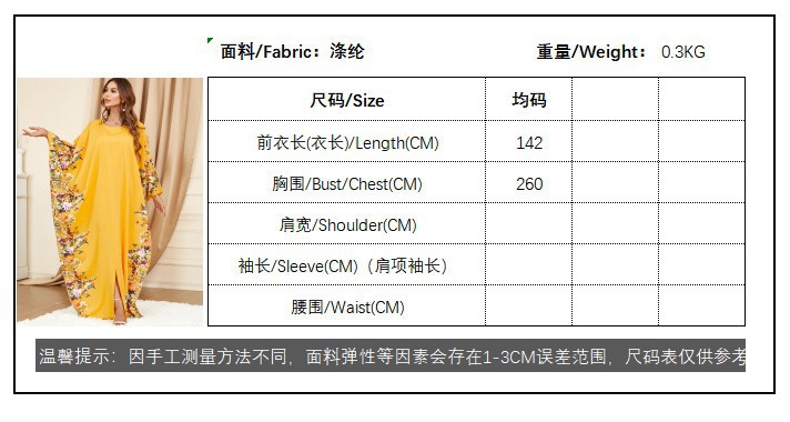 3422中東イスラム教徒コウモリ袖国境を越えた対外貿易女装アラブ服装プリントabayaワンピース