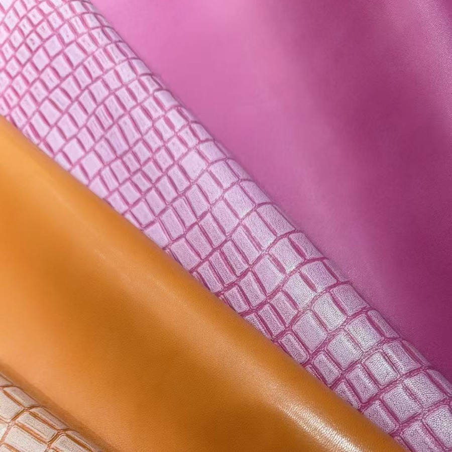 间隔编织纹羊皮采用手工编织工艺和优质羊皮,皮质柔软细腻,纤维结构紧密,表面光滑,质地轻盈,具有良好的亲肤性和透气性,相比牛皮,羊皮较薄且柔软,通过编织工艺可提升整体耐用性,纹理立体感强,光影下层次分明,兼具现代感与复古风格,凭借独特的工艺与优雅质多用于轻奢品牌、设计师款皮具或定制家居