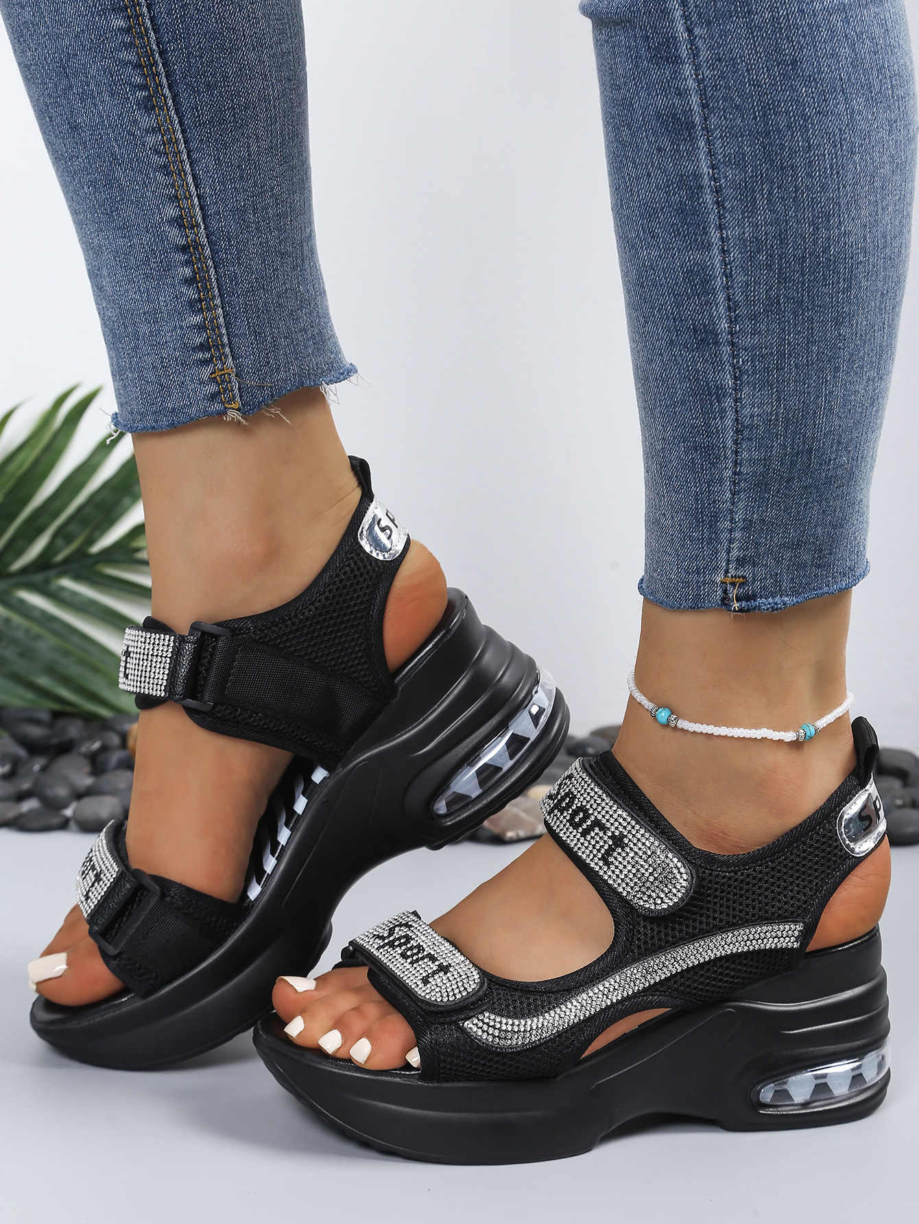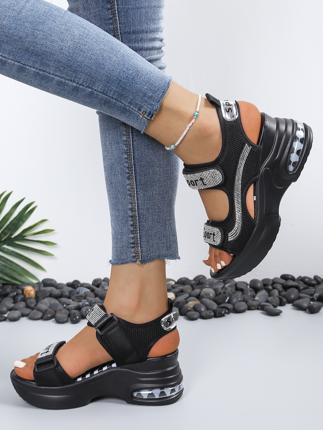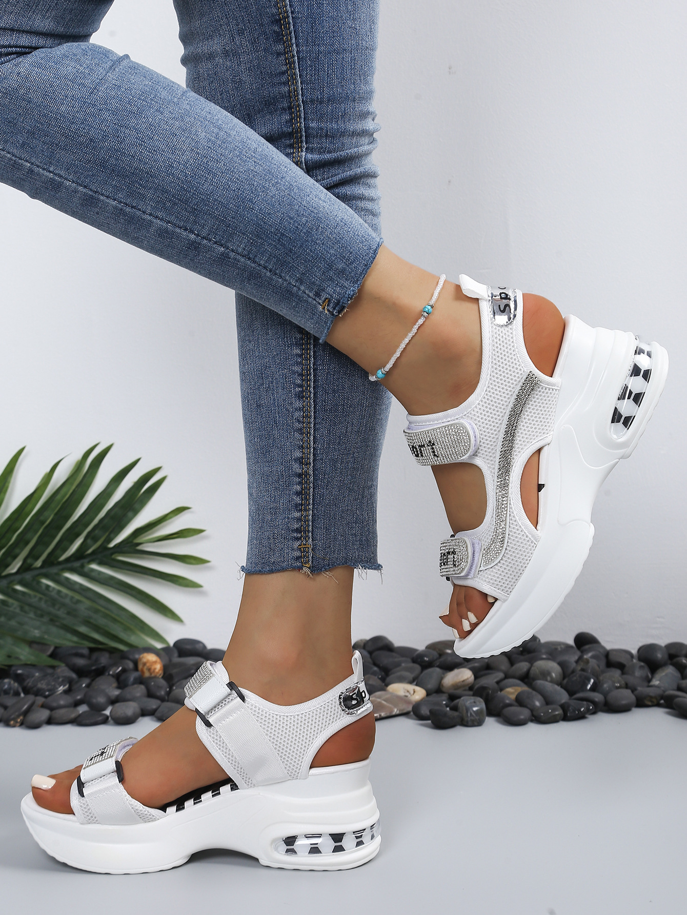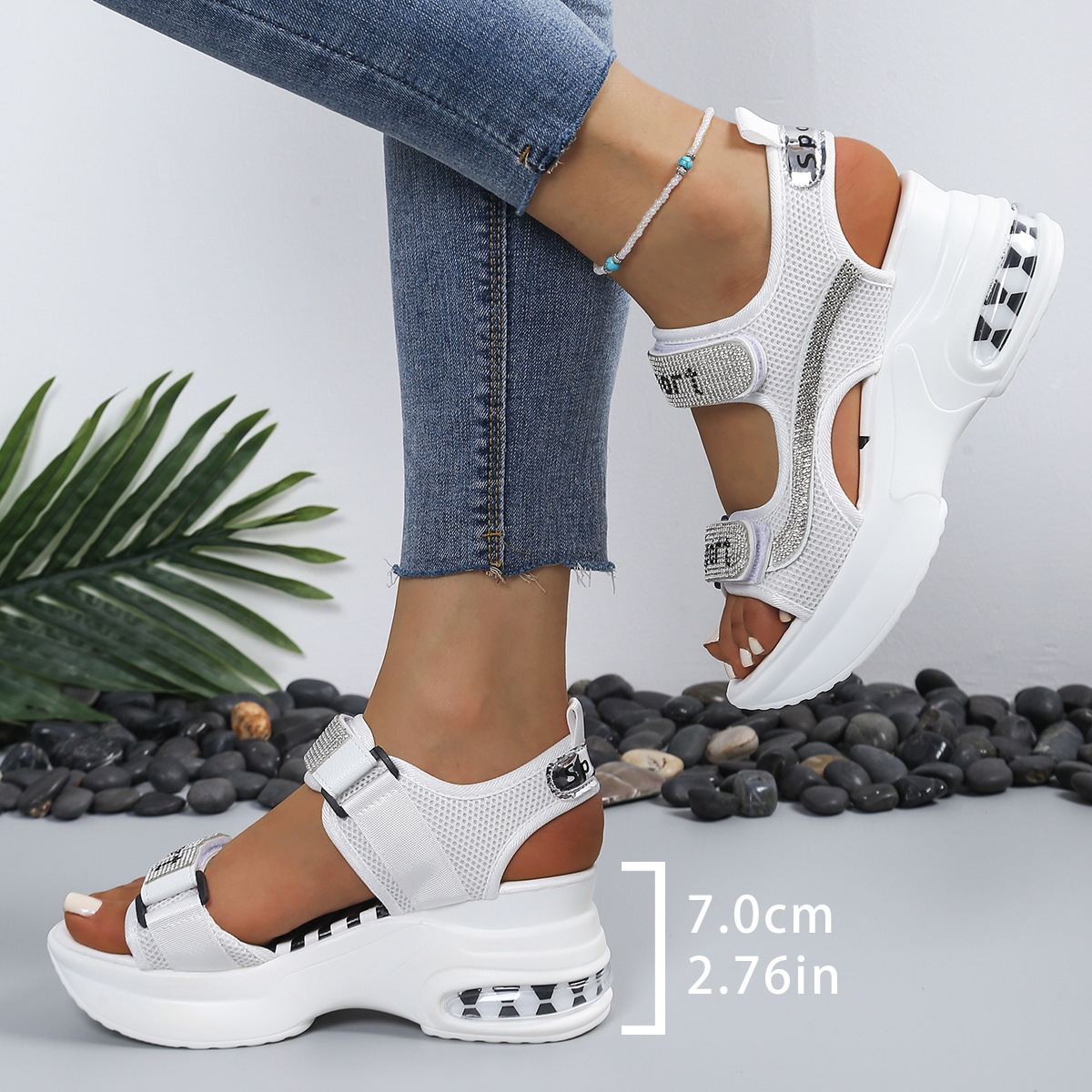 外国貿易大きいサイズプラットフォーム厚底サンダル女性のための 2025 夏の新ラインストーンレターベルクロカジュアルスポーツサンダル