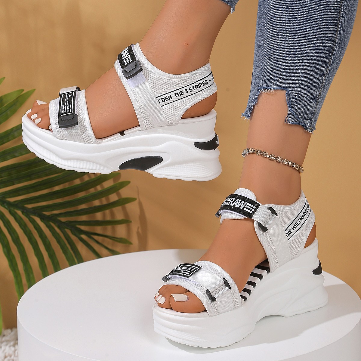 ネットセレブウェッジサンダルレディース大きいサイズ魚口小人プラットフォーム外国貿易スポーツスタイルサンダル8センチメートルレディースシューズ厚底