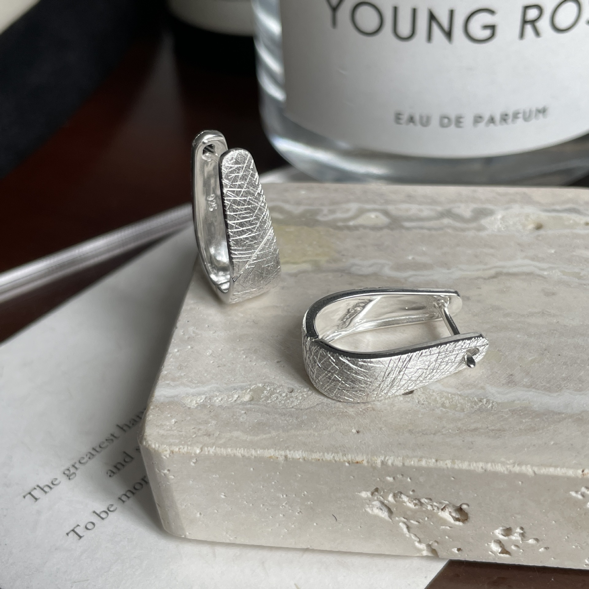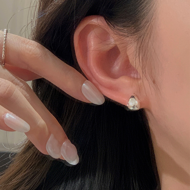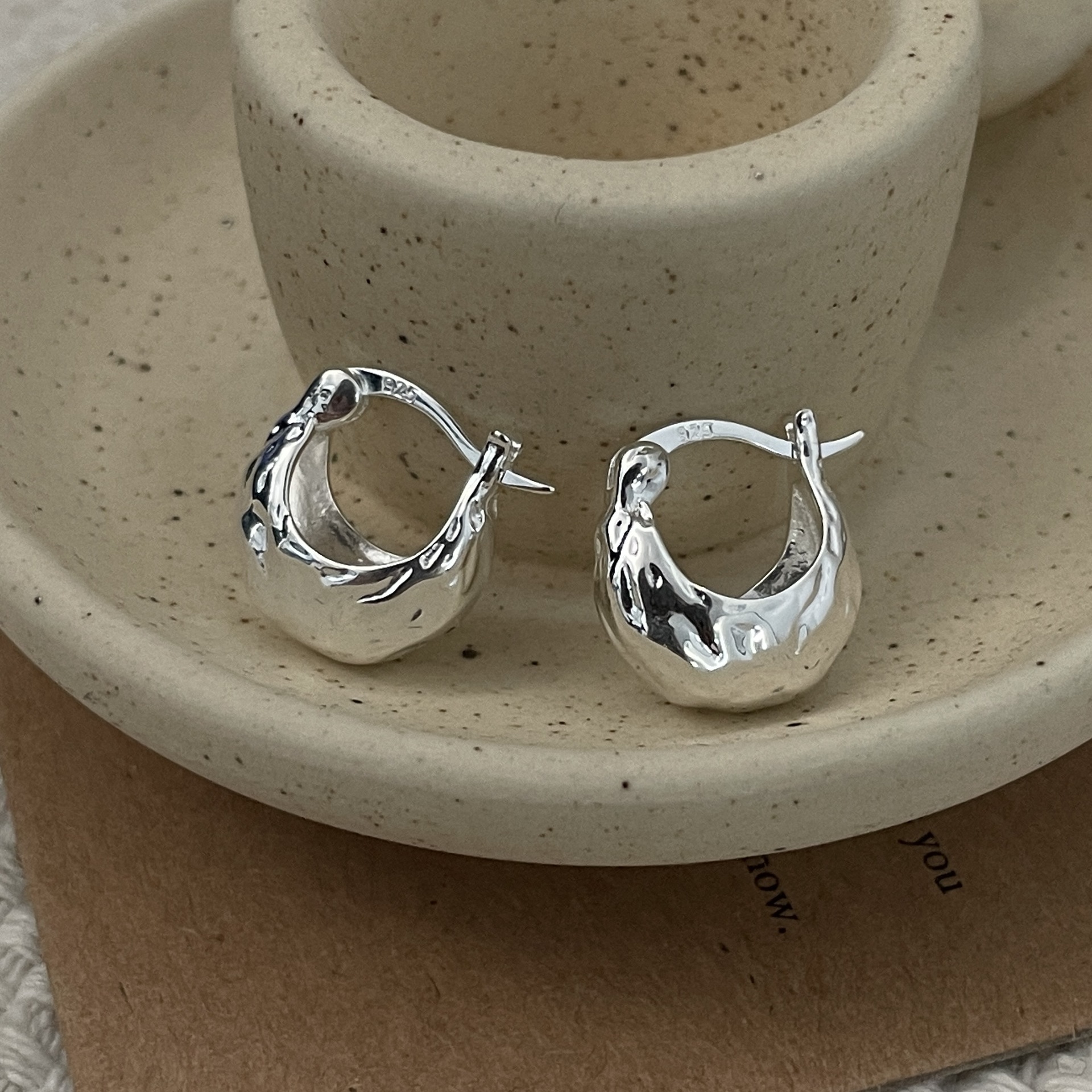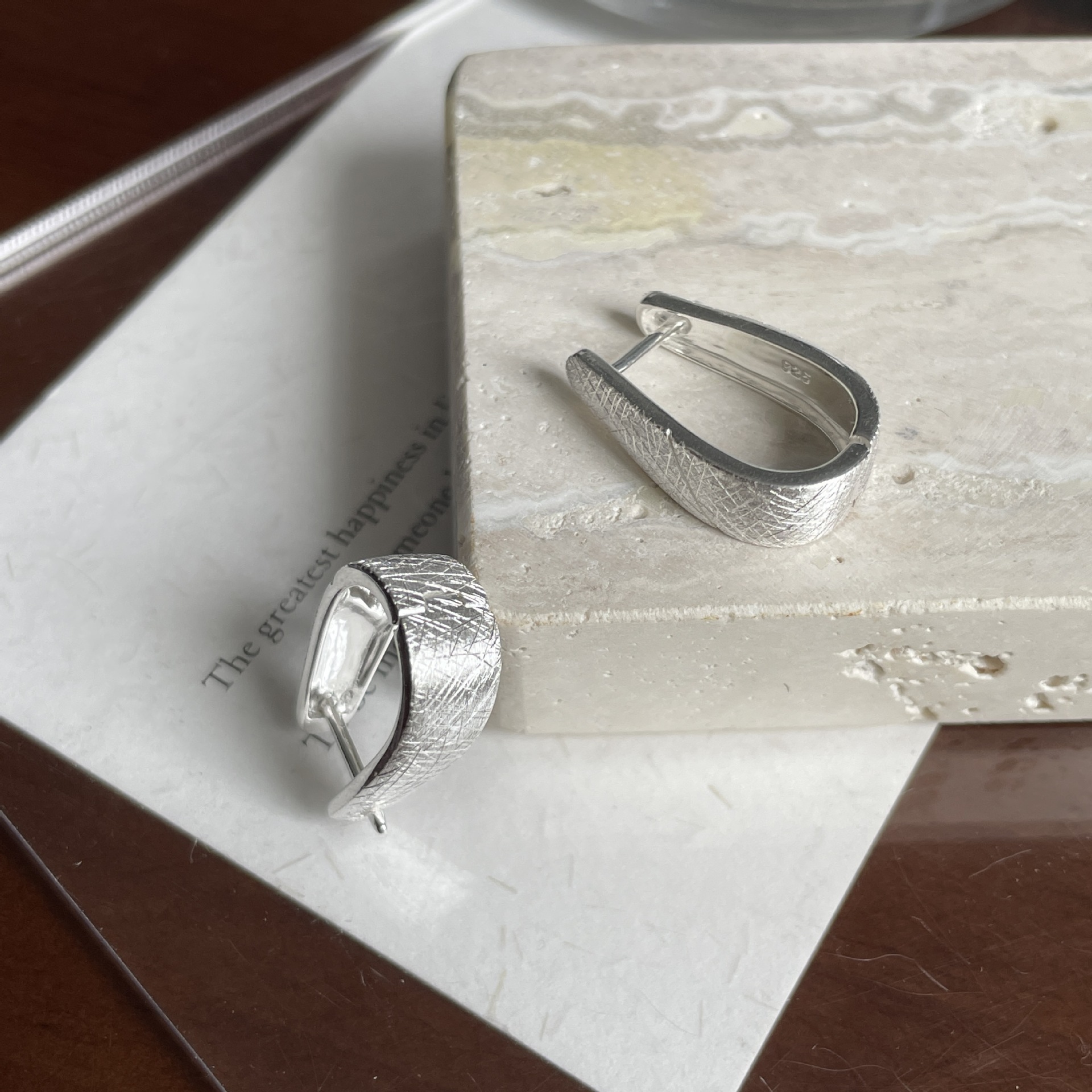 S925纯银韩版小众设计感不规则肌理感耳扣复古百搭旦形耳饰品批发