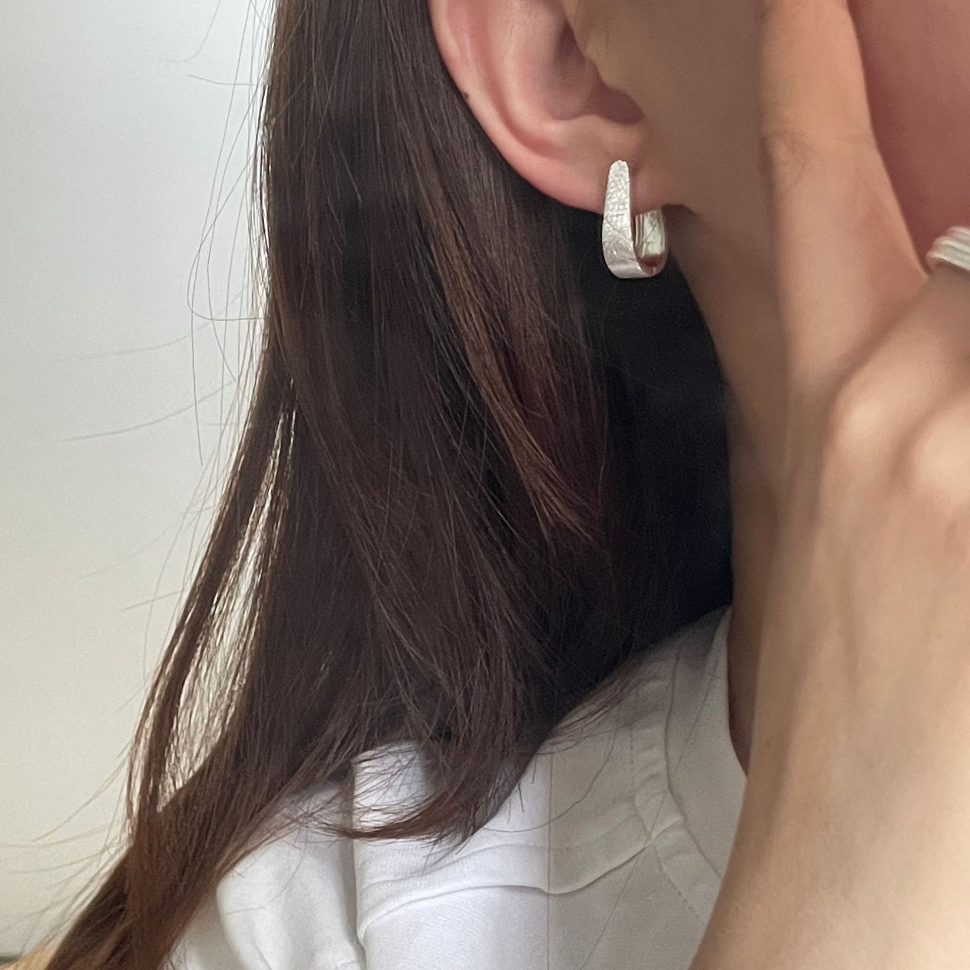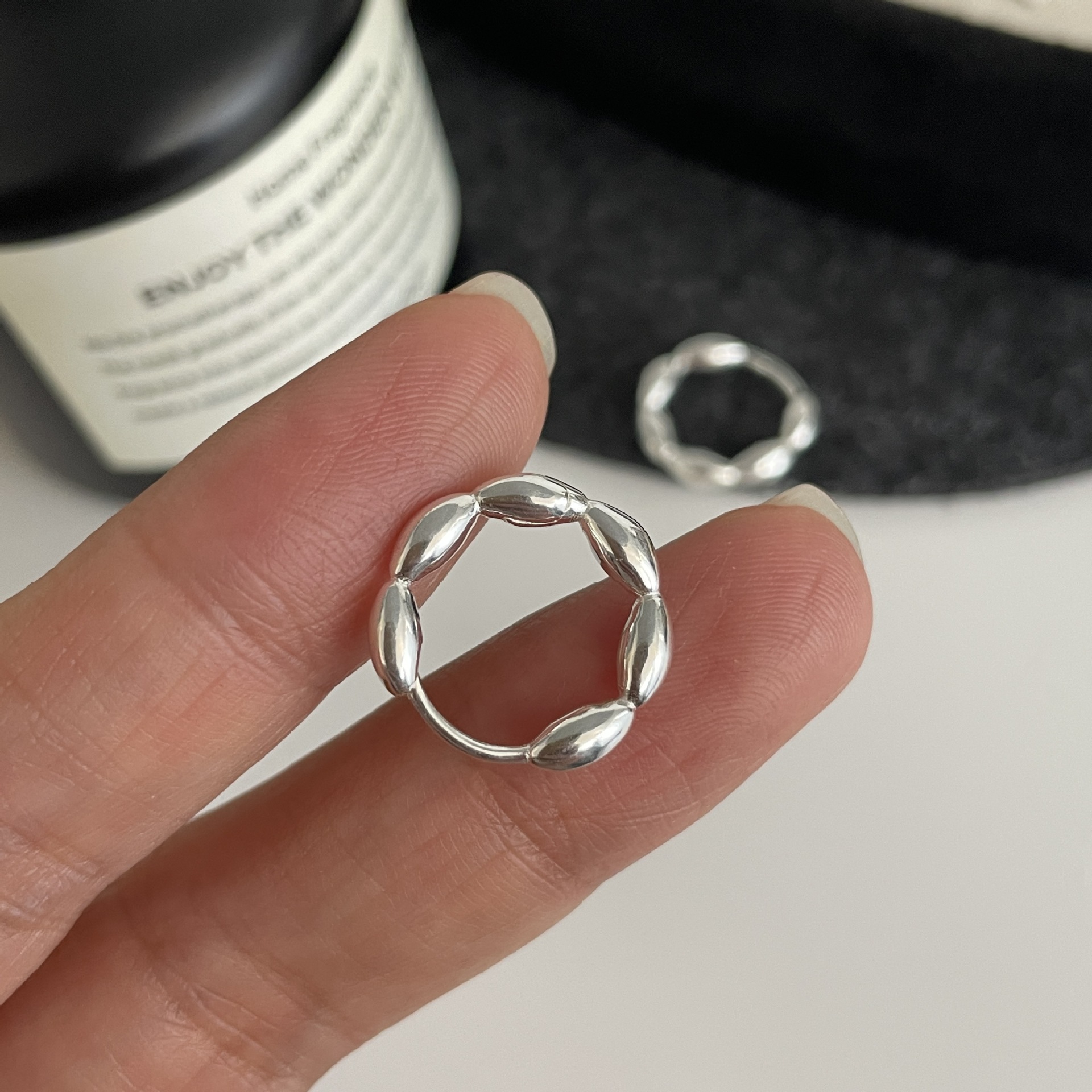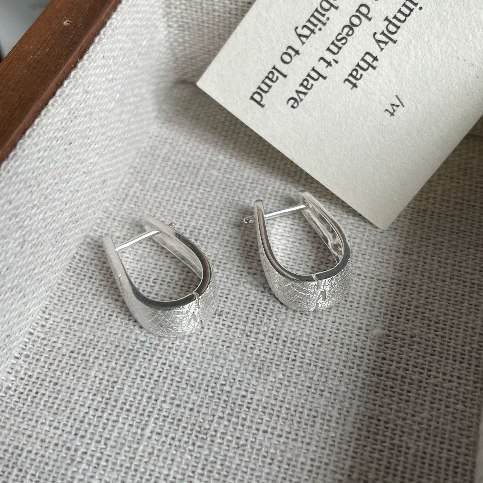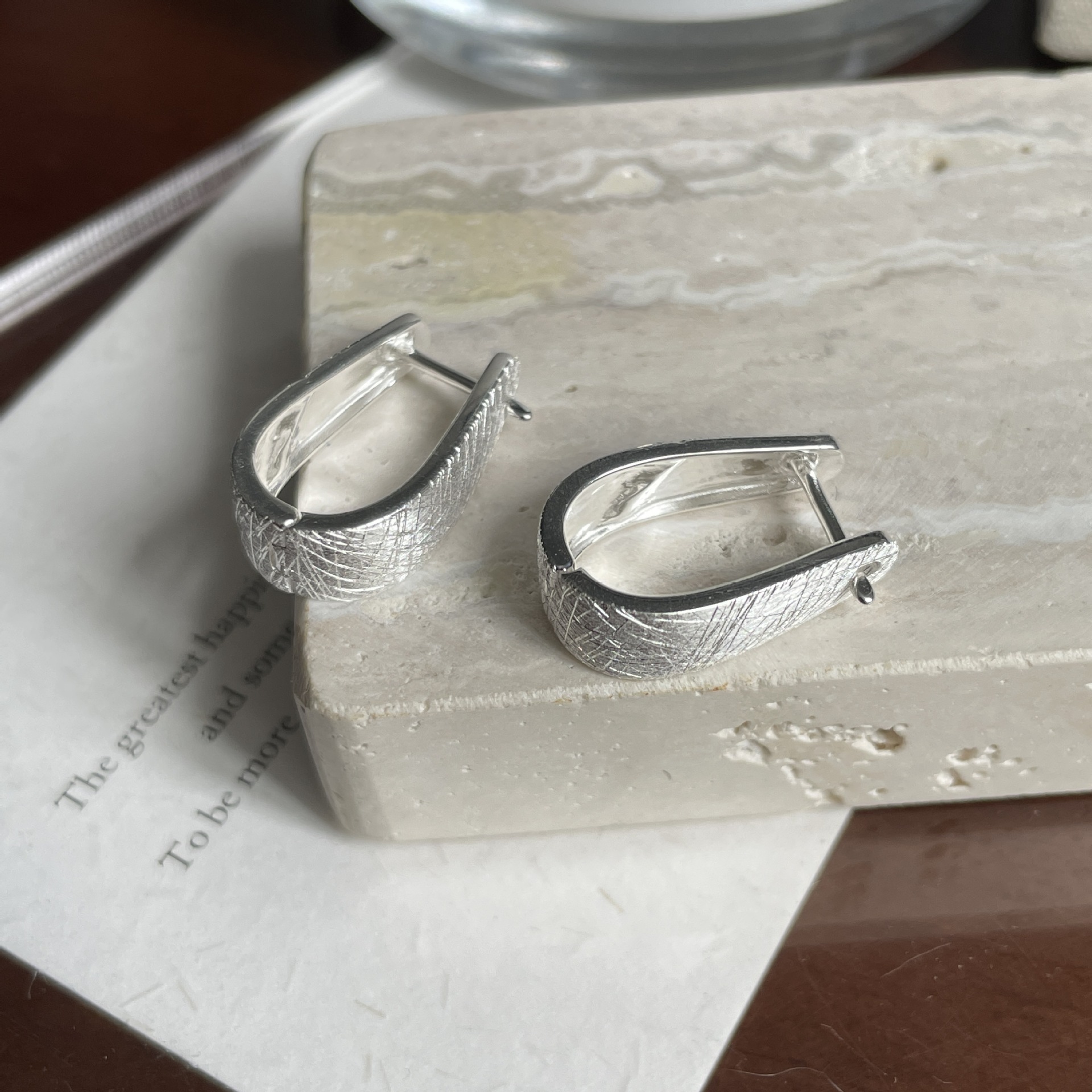 S925纯银韩版小众设计感不规则肌理感耳扣复古百搭旦形耳饰品批发