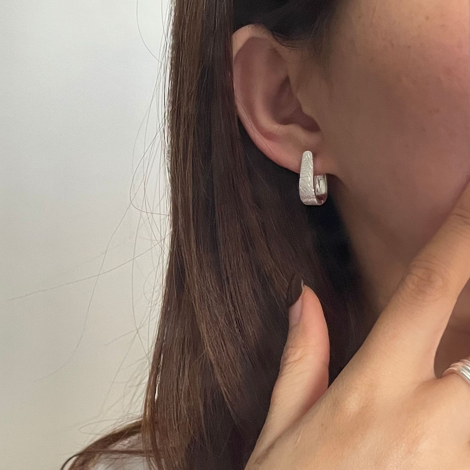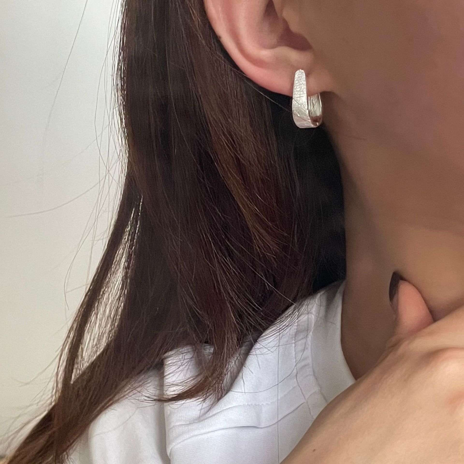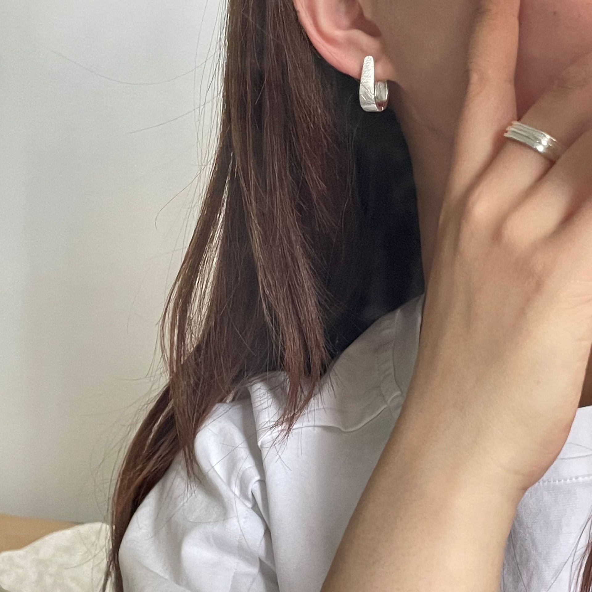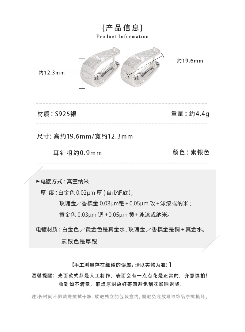 S925纯银韩版小众设计感不规则肌理感耳扣复古百搭旦形耳饰品批发