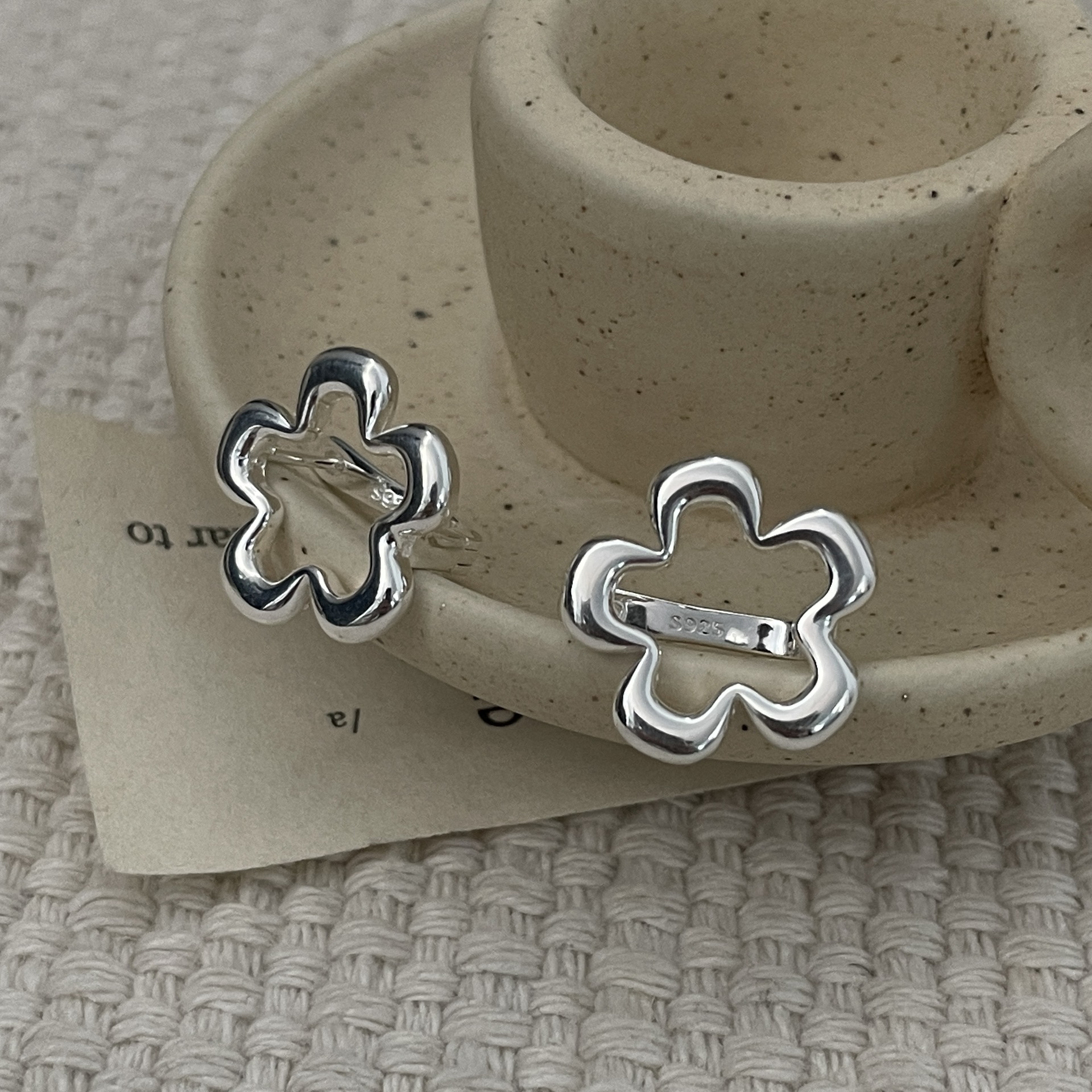 S925纯银小众设计感小花复古简约耳扣韩版韩式风时髦花朵耳饰批发