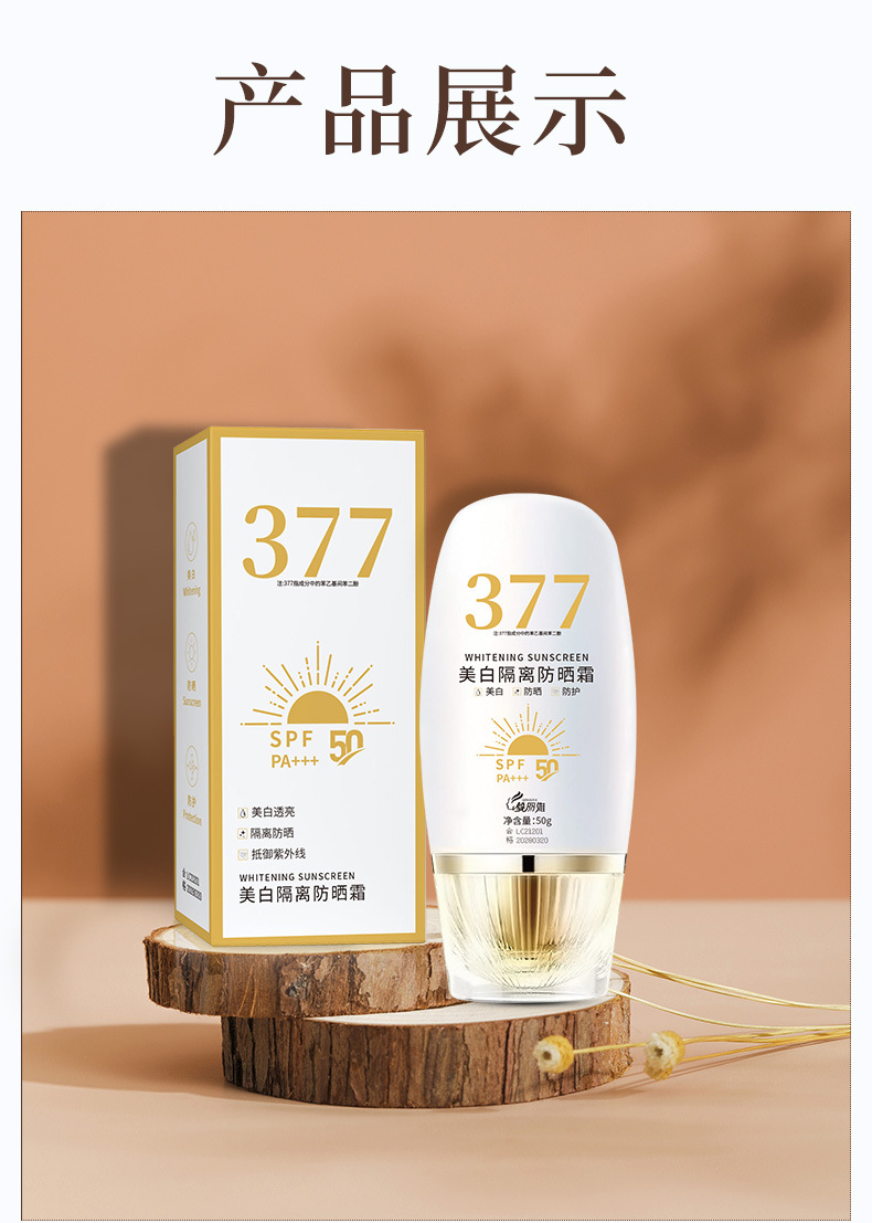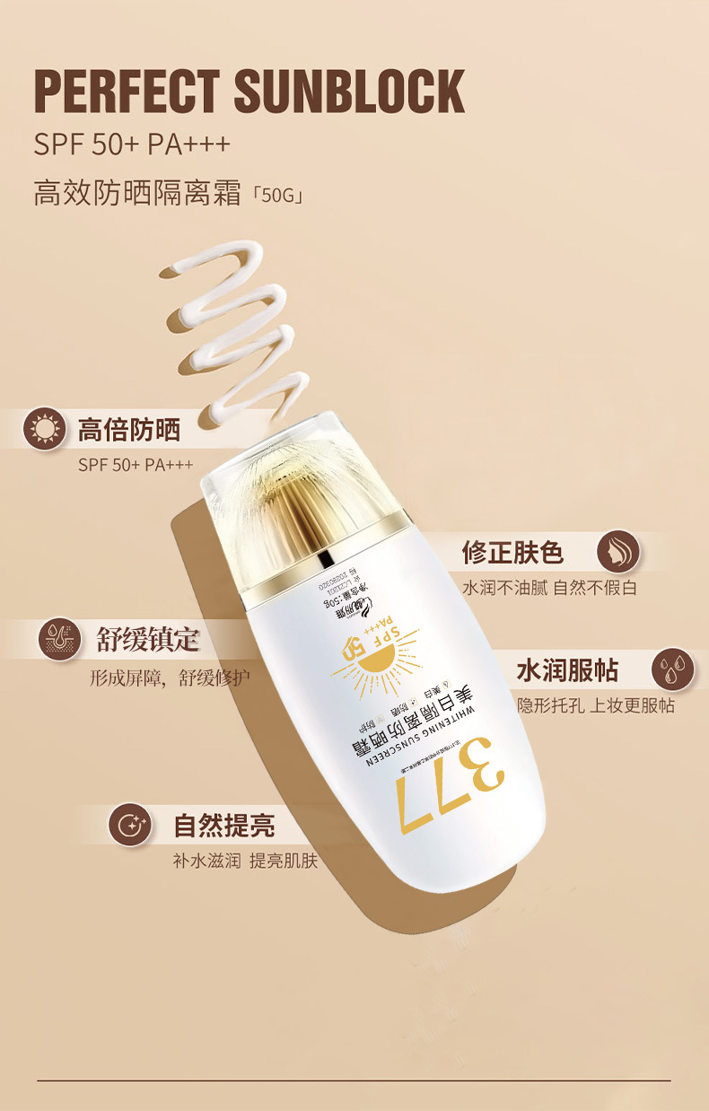 377美白 & 隔離日焼け止め国産ブランドの爽やかな潤い軍事訓練隔離紫外線SPF50 PA