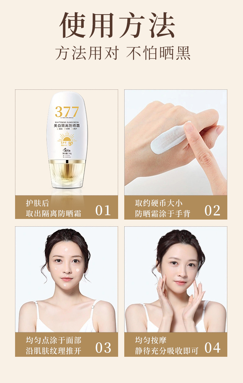 377 美白アイソレーション日焼け止めクリームノーメイクアイソレーション日焼け止め 50 高効率保湿非流動白スープ学生軍事訓練