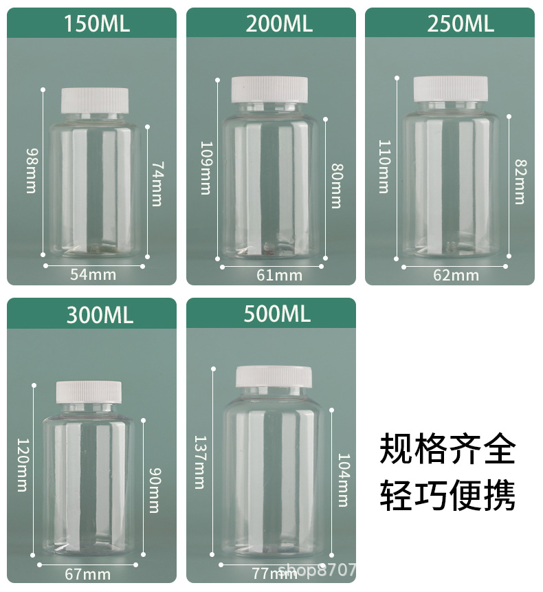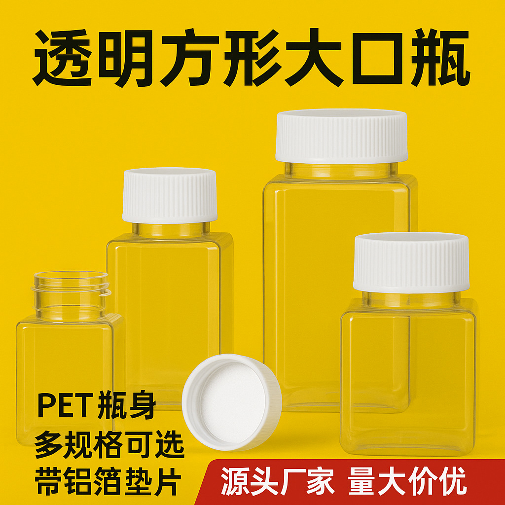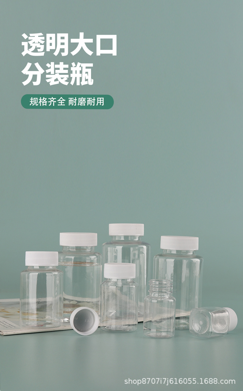 现货透明广口塑料瓶液体pet分装瓶药瓶胶囊分装瓶带垫片保健品瓶