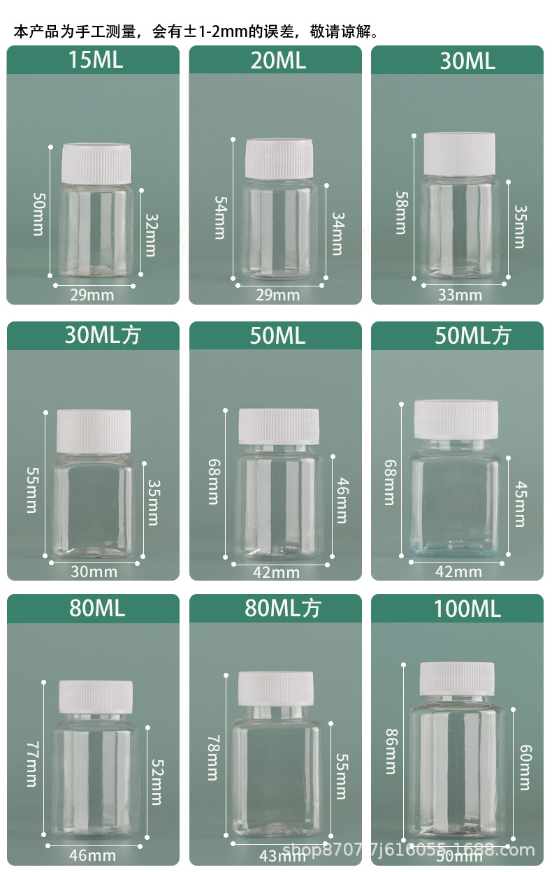 批发透明小方瓶拼豆收纳瓶30毫升50毫升小方瓶透明塑料瓶胶囊瓶