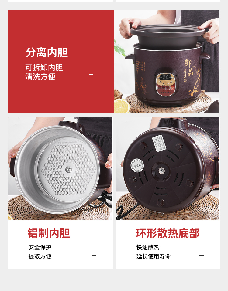 黒紫砂電気シチューポットセラミックスープ家庭用健康スープとお粥調理器具全自動多機能 bb 紫砂ポット