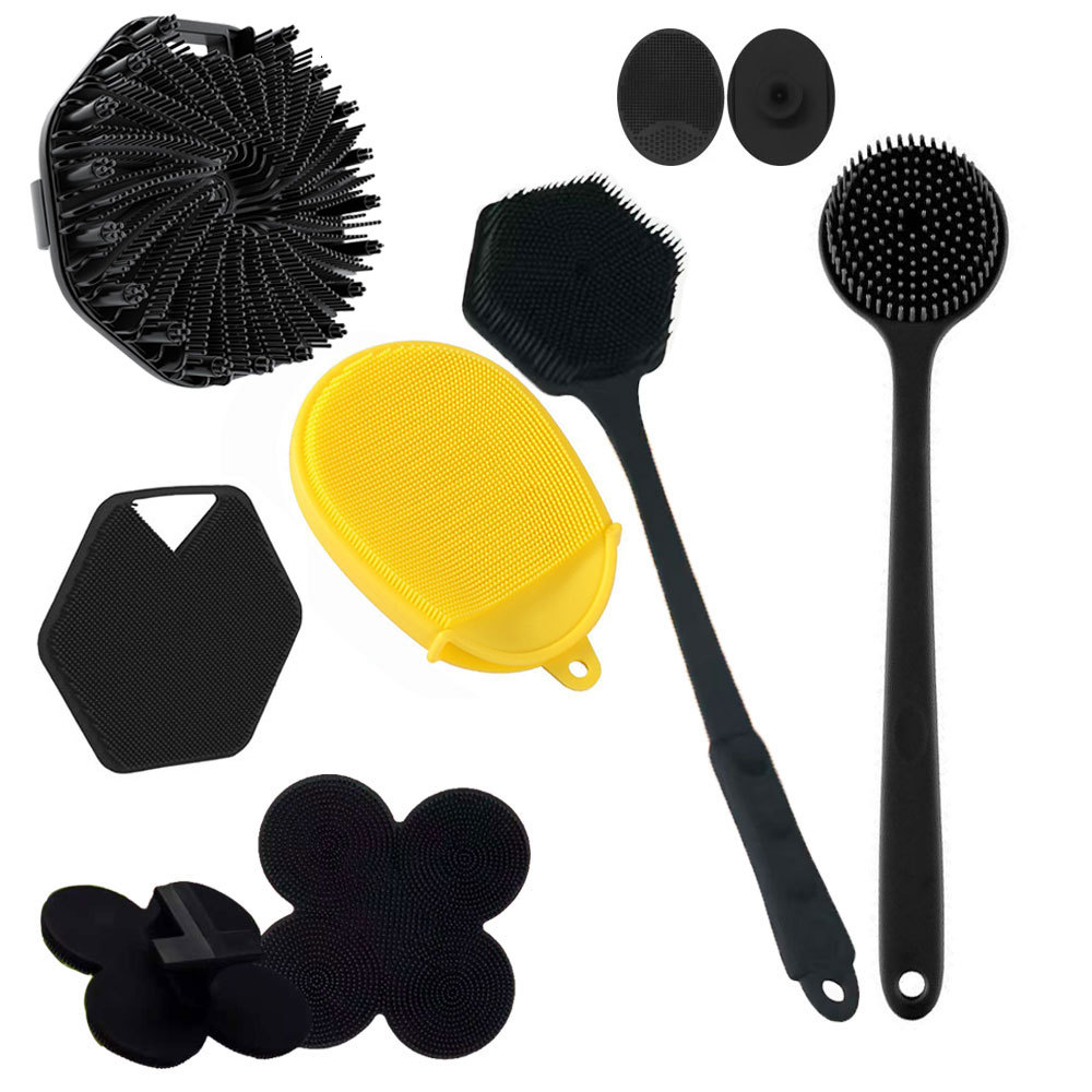 国境を越えたシリコン製お風呂ブラシ、マッサージツール、クリーニングブラシ、浴室用両面ロングハンドルブラシ、怠け者向け背中こすりブラシ、入浴ブラシ