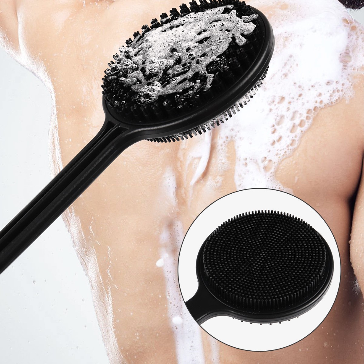 ✅長い柄の両面のシリカゲルの入浴ブラシは風呂に入って体をこすります。マッサージブラシは風呂に入って背中のブラシを洗います。