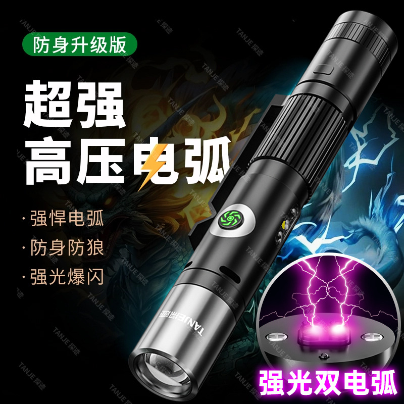 屋外懐中電灯高電圧アーク自己防衛懐中電灯強力な光フラッシュ SOS 信号伸縮ズーム充電式懐中電灯