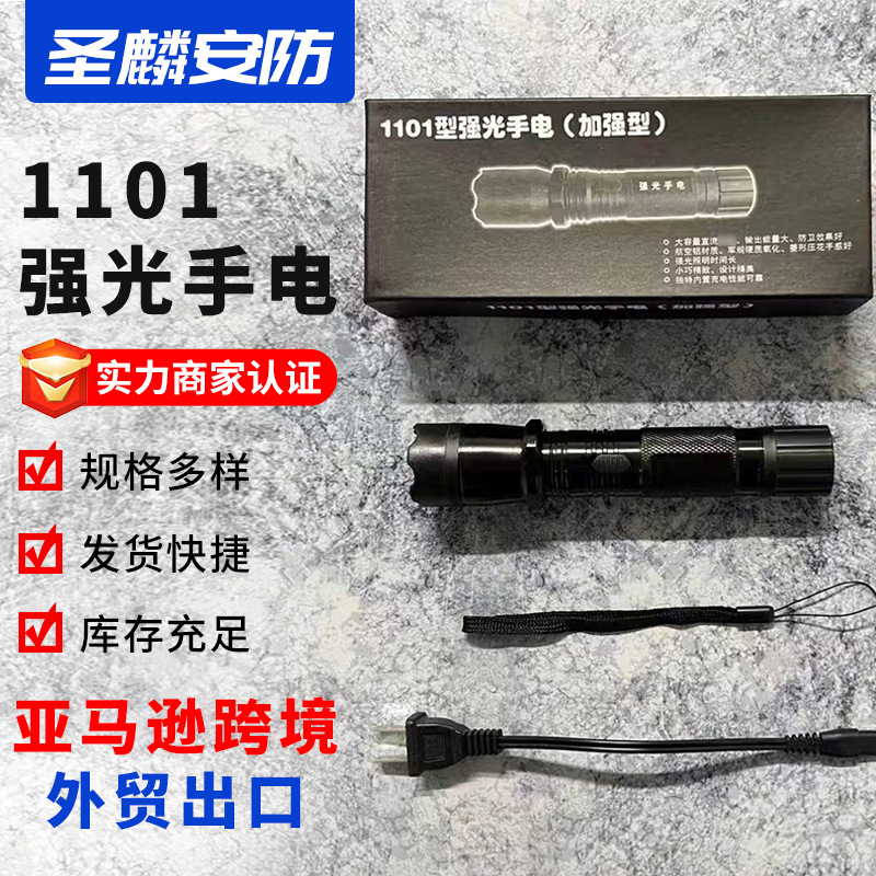 跨境 1101强光手电筒多功能可充自卫户外应急便携户外手电筒