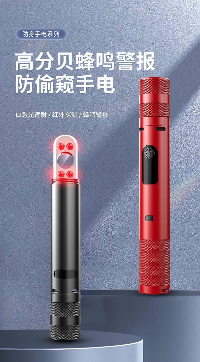 女の子用ポータブルアーク懐中電灯、護身用強力ライト懐中電灯、覗き見防止赤外線鋸歯状攻撃ヘッド懐中電灯