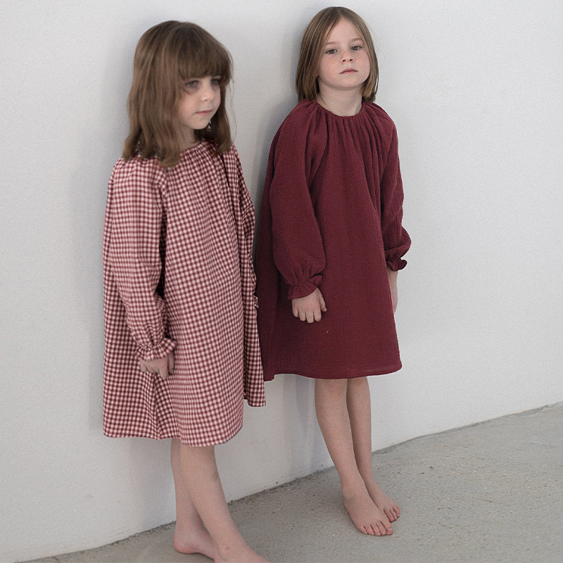 2025 春と秋の純粋な綿のチェック柄ドレス女の子のためのかわいい二層ガーゼ長袖ネグリジェ女の赤ちゃんホーム服