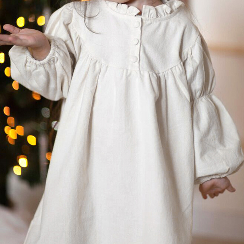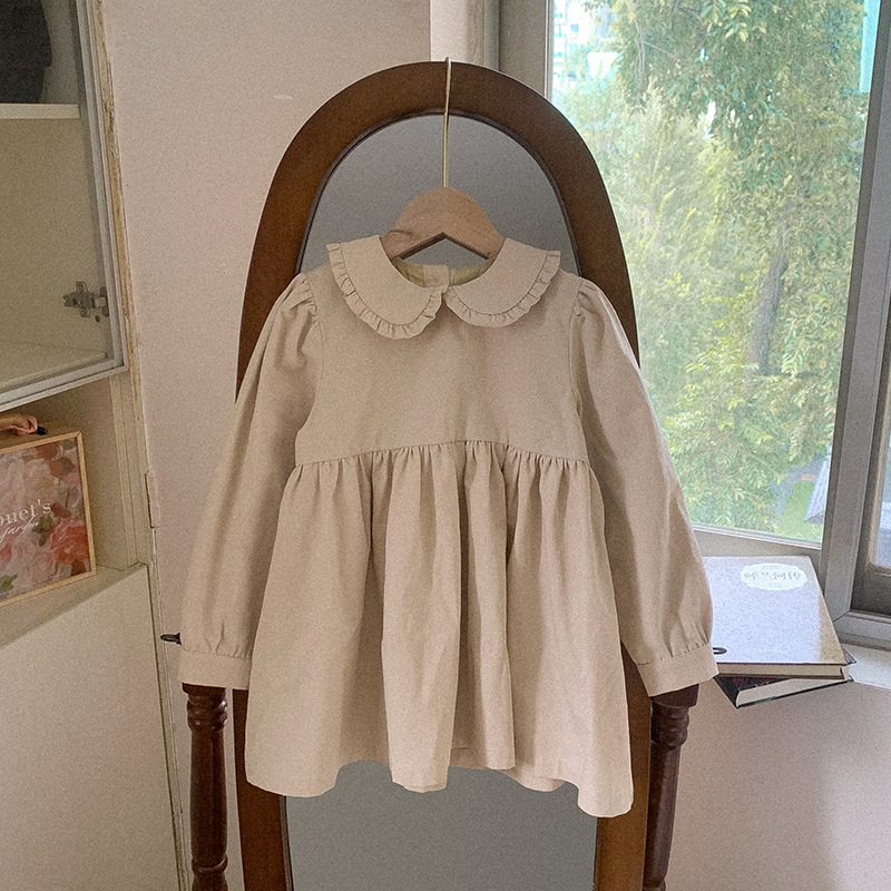 春と秋の耳介小襟ドレスクロスボーダー子供服純綿長袖スカート白ドレス女の赤ちゃん
