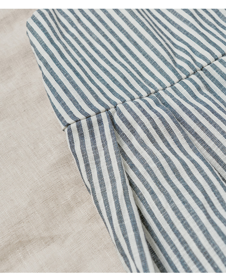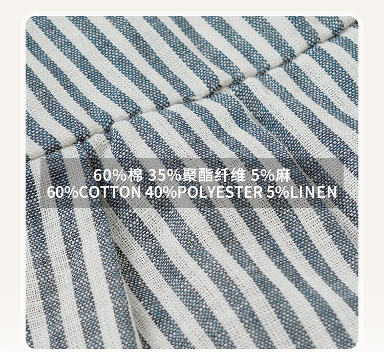北欧風色織ストライプワンピース25夏丸首ボタンa字スカート女宝ノースリーブベスト綿麻スカート