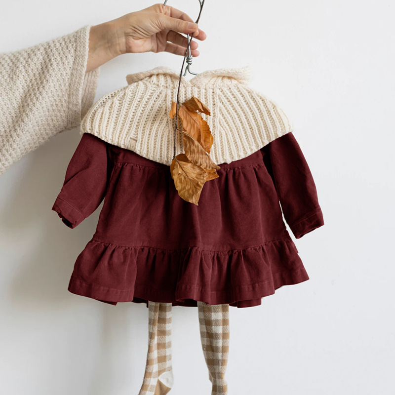 クリスマスコーデュロイプリンセスドレス 女の子用 ベビー服 25春秋新作 子供服 ゴム入り襟付き パレス風 綿100%ワンピース