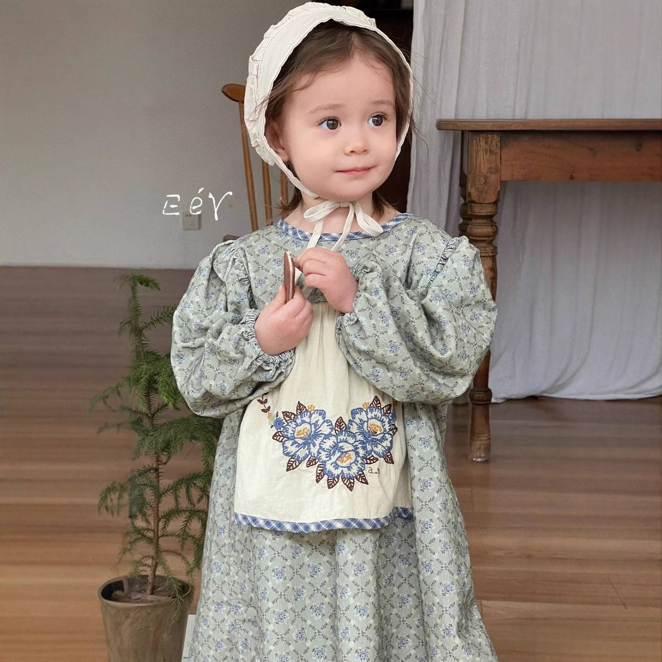 Eer2025春の新作韓国風甘い花柄刺繍ドレス小中型女の子用