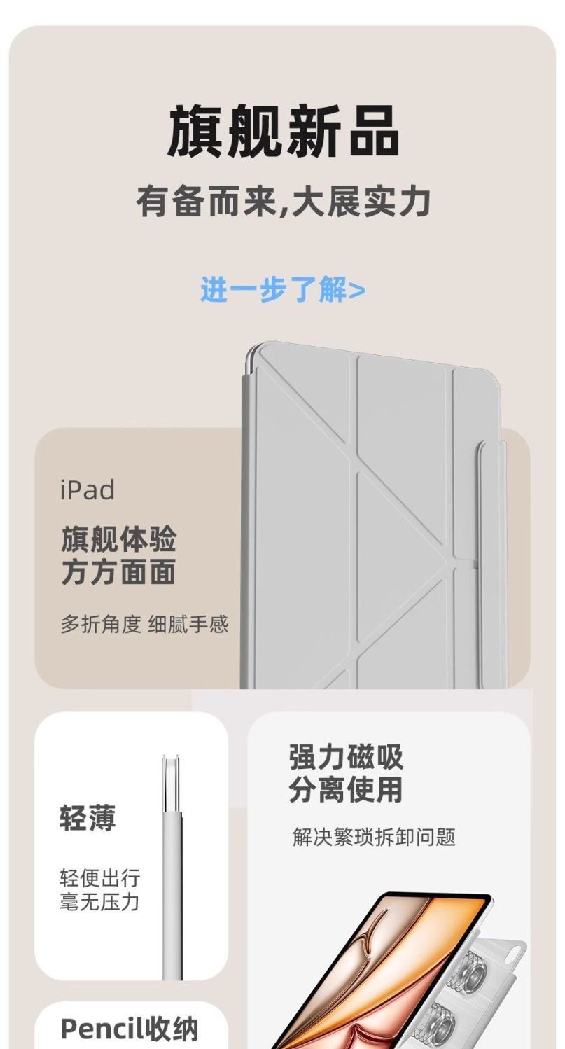 2025年発売予定の磁気吸着式分割型iPad第11世代3Y折りたたみpro11inch保護ケースmini7透明シェルAir7