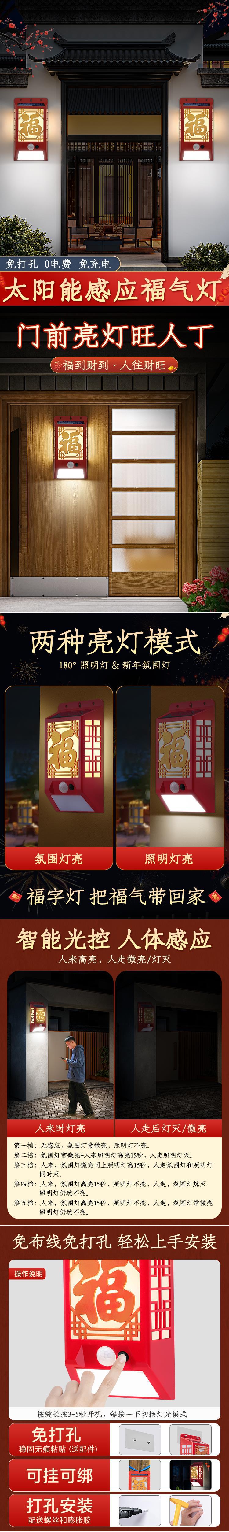 2025 蛇年ランタンフェスティバル新中国風ソーラー屋外中庭ウォールランプゲートセンサーフロントランプ祝福ランプ