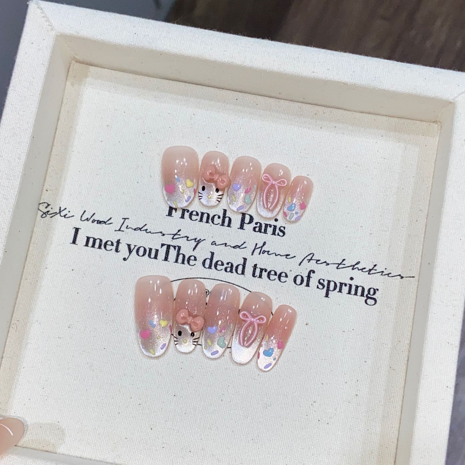 奥勉純手作り爪かわいい彩色絵kt猫ネイルカラーキャンディー蝶ネクタイネイルシール