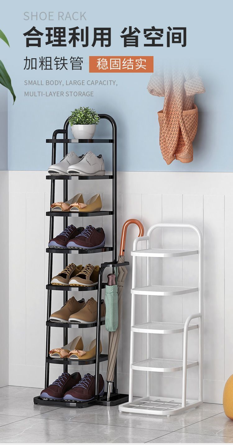 金属多層靴一体型収納ラックシンプルな家庭用玄関アイアンシューズラック太い組み合わせ傘ラック卸売