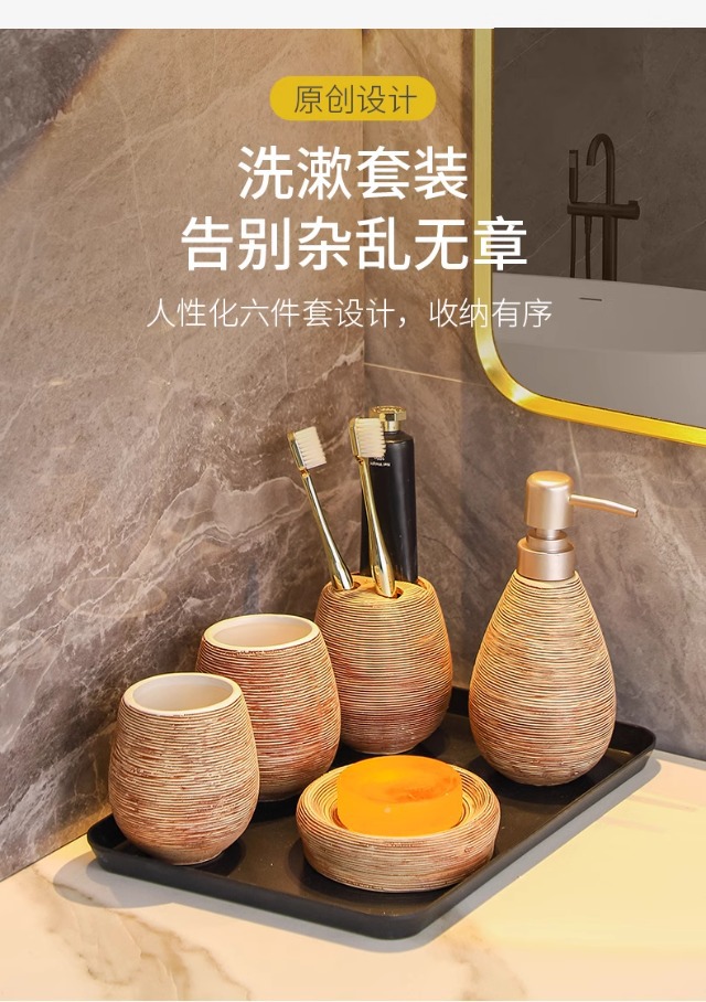 バスルーム5点セット、手作りセラミックウォッシュ4点セット、バスアメニティセット、ホテル有名ウォッシュカップセット